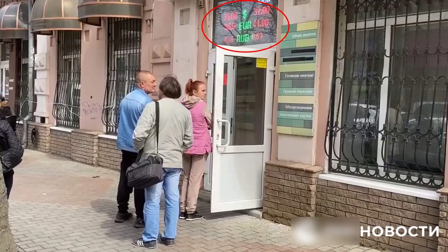 Спершу вони показали заправну станцію, де чоловік чомусь кілька секунд тримає гроші в кадрі, а лише після цього платить за бензин рублями, – коментує сюжет медіаексперт і екснардеп Сергій Лещенко. – Після цього показали працівника АЗС, який почав дякувати Росії за те, що в місто завезли пальне. Проте потім самі пропагандисти сконфузилися та показали обмінник валют, де курс долара та євро досі вираховують у гривнях. При чому вказана ціна рубля вкрай далека від реальної…