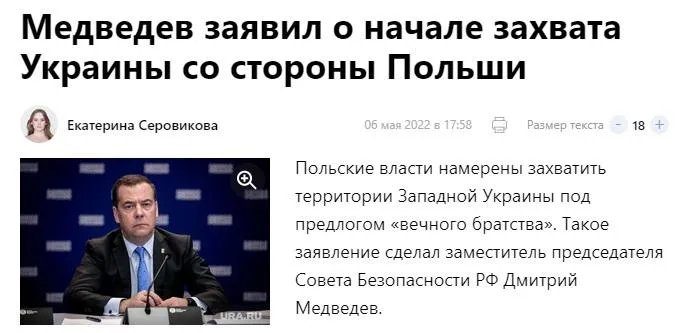 Головна мета такої брехні – переконати росіян, що це не РФ хоче загарбати території України, а Польща. Зліплена "сенсація" дуже примітивно, але мільйони зазомбованих ватників, як бачимо, по ситуації в Мордорі, навіть такій дурні вірять…