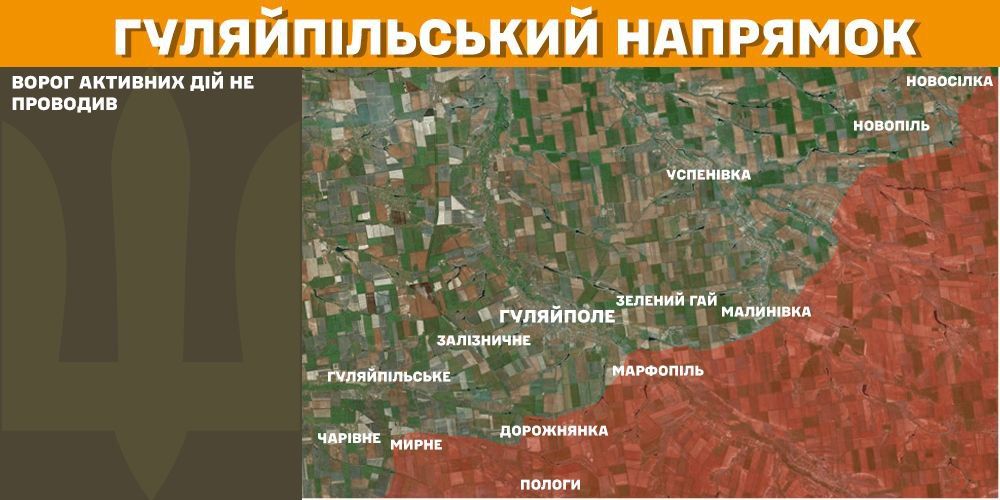 На Сіверському, Гуляйпільському та Придніпровському напрямках минулої доби ворог не проводив активних дій.