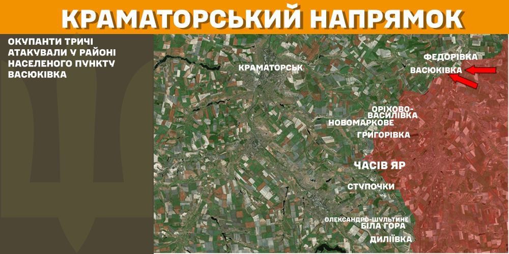 На Краматорському напрямку окупанти тричі атакували у районі Васюківки.