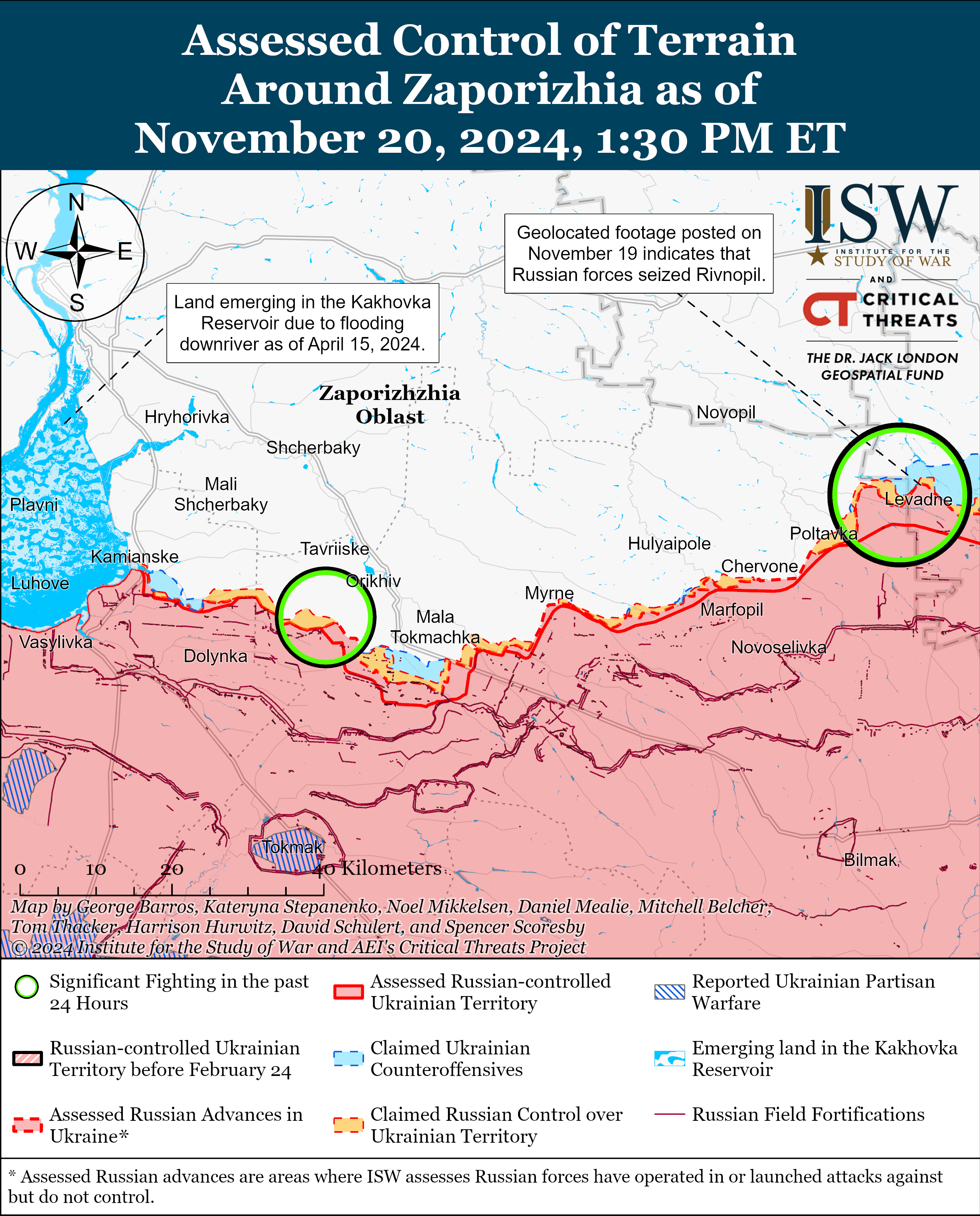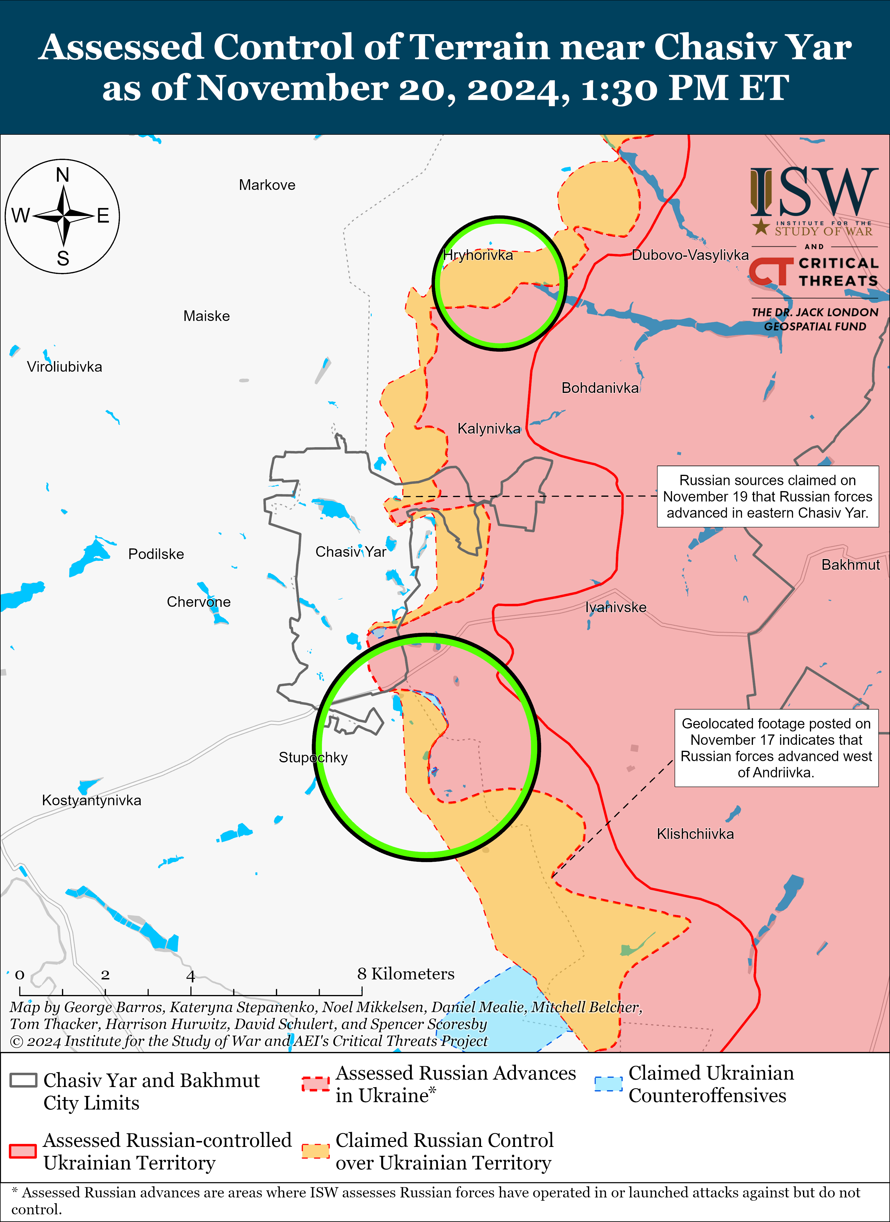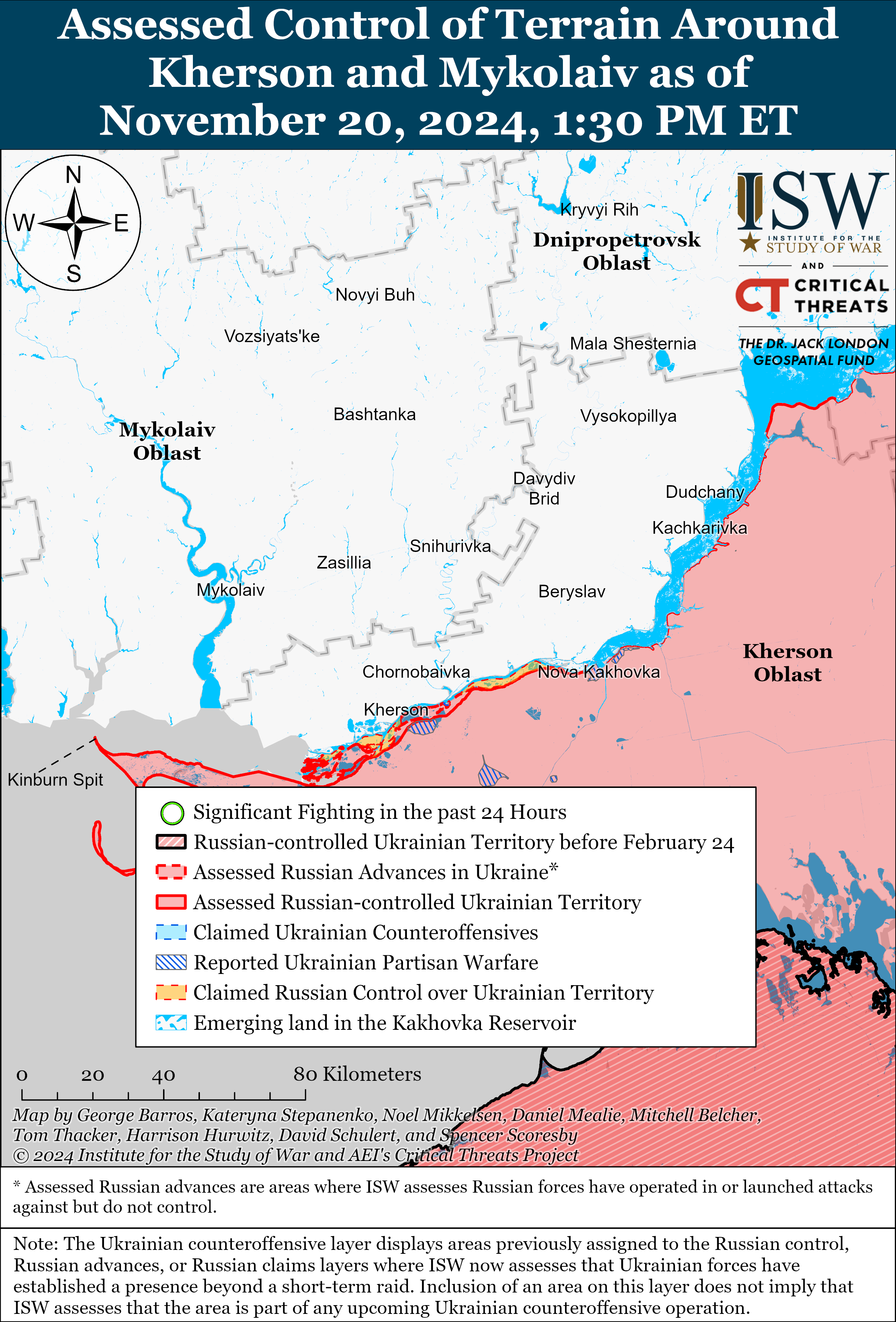 24 Канал із посиланням на ISW переказує головні висновки звіту. А також показує карти зі змінами, які зауважили американські аналітики впродовж 20 листопада.