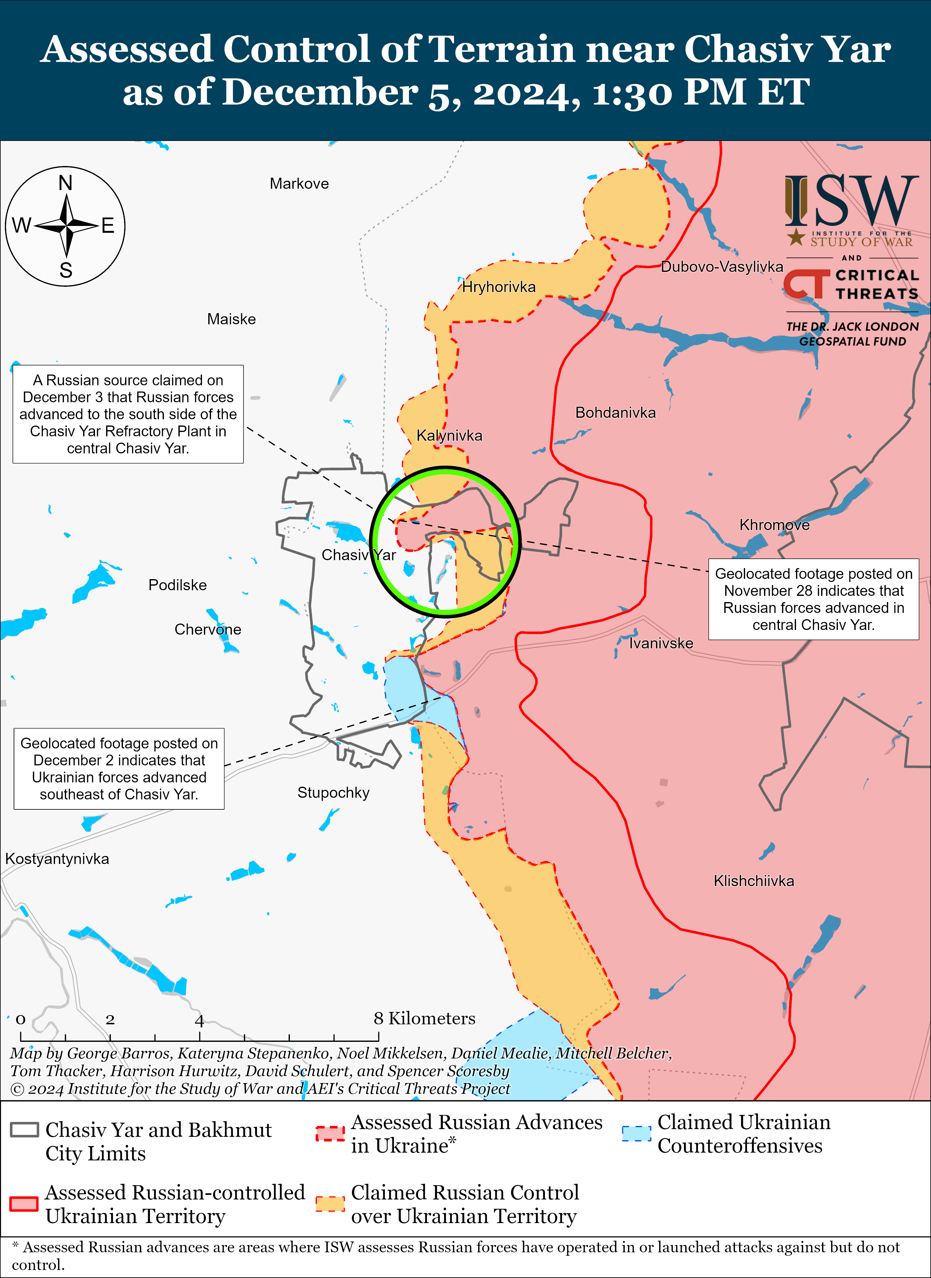 - Російські війська 4 і 5 грудня продовжували наступальні операції на лінії Куп'янськ – Сватове – Кремінна, але жодного підтвердженого просування не зробили. Так само на Сіверському та Часівярському напрямках.