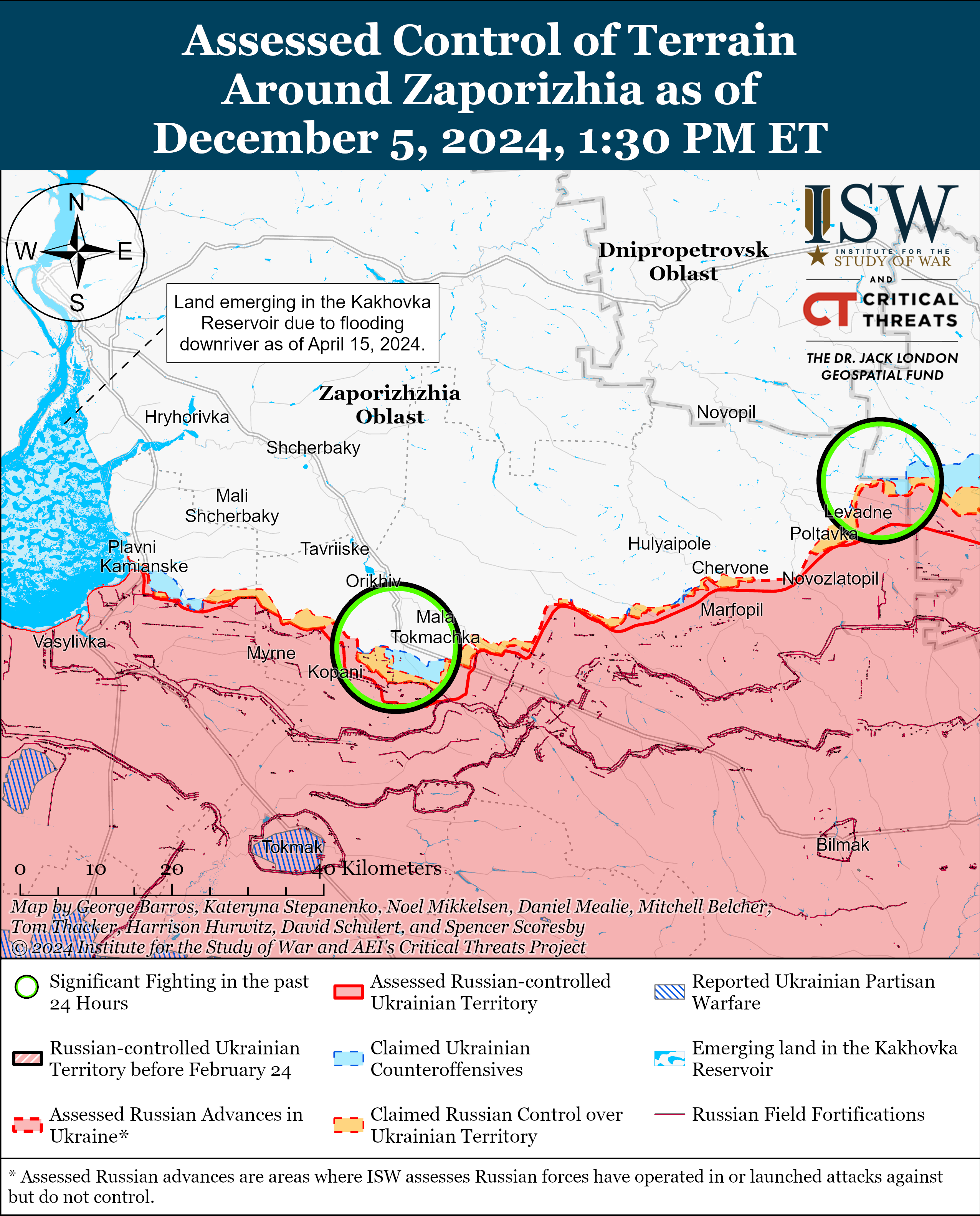 - 5 грудня російські війська продовжували наступ у районі Великої Новосілки, але жодного підтвердженого просування не зробили. На заході Запорізької області в районі Роботиного і Новоданилівки також не просувалися, як і на Херсонщині.