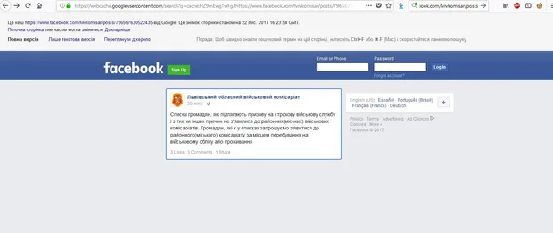 Після того, як історія набула розголосу, сторінку військомату у Facebook було деактивовано, однак дописи із прізвищами станом на 23:55 22 листопада доступні у веб-кеші Google.