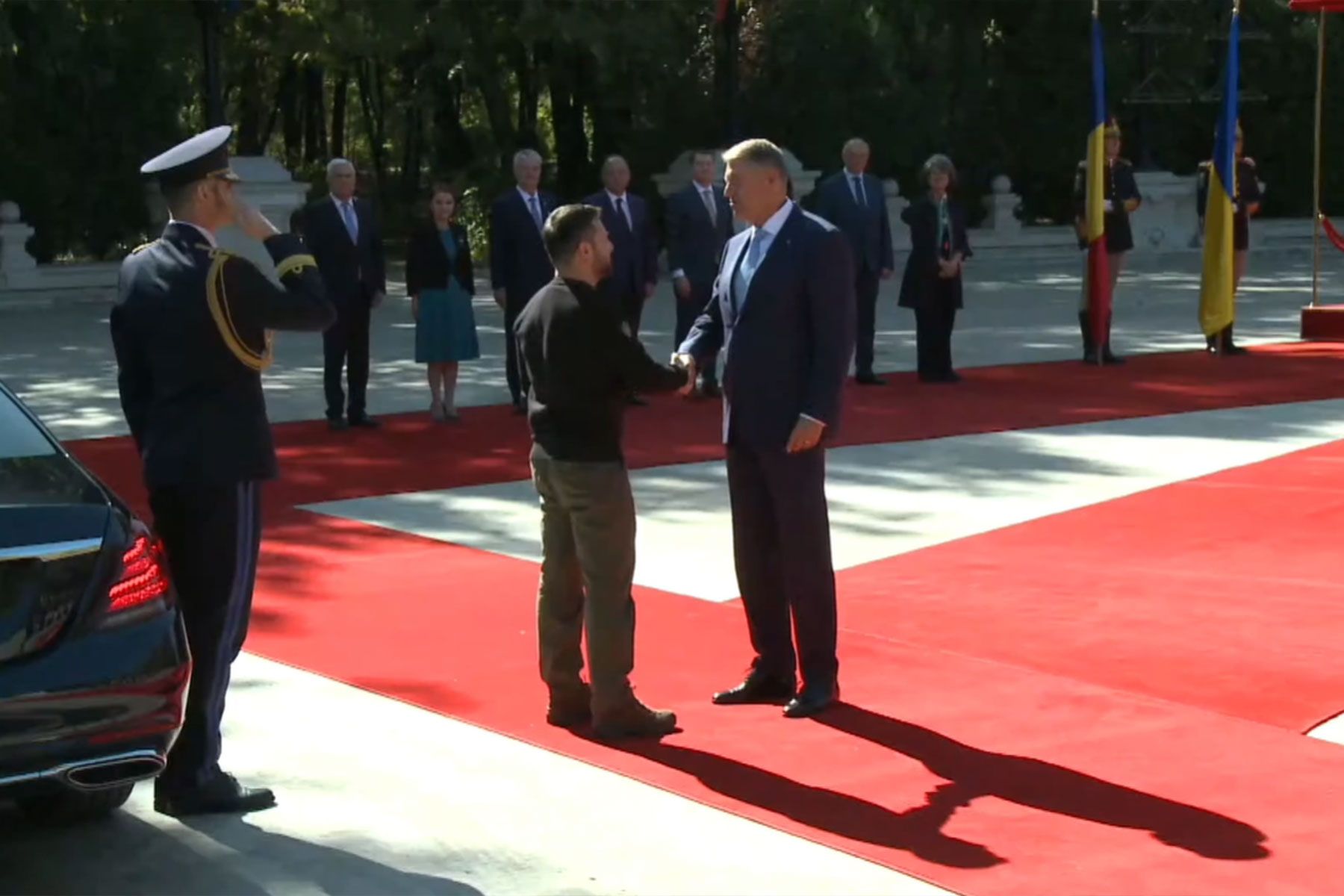 В обід 10 жовтня Володимир Зеленський офіційно зустрівся з президентом Румунії Клаусом Йоханнісом. Українського лідера зустріли з почестями та військовим оркестром, який виконав гімн України та Румунії.