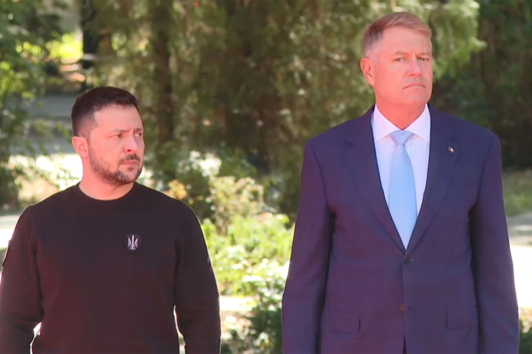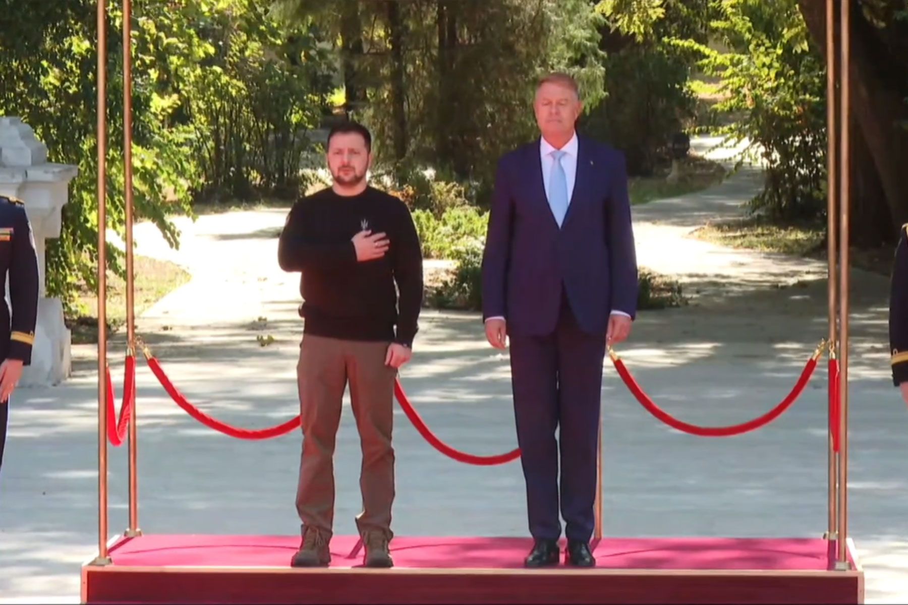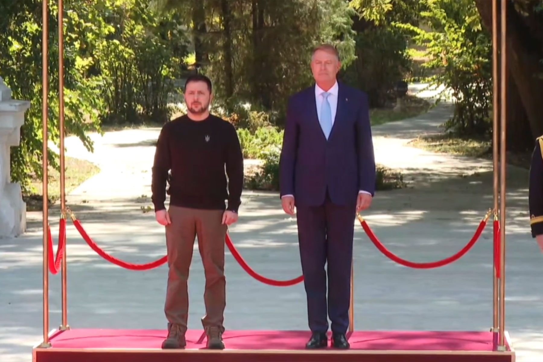 Зеленський зустрівся президентом Румунії Клаусом Йоханнісом. За його словами, у нього великий спектр тем для переговорів з лідером Румунії. Це перший візит Зеленського до Румунії від початку повномасштабного вторгнення Росії.