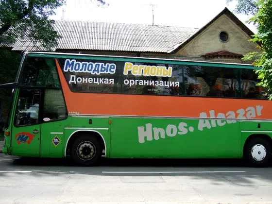 Біля школи на провулку Орешкова стоїть автобус із символікою "Молоді регіони", повідомляють Novosti.dn.