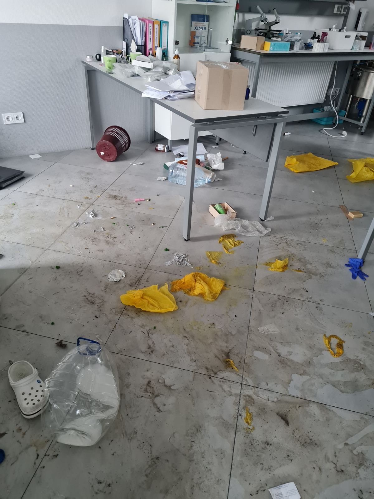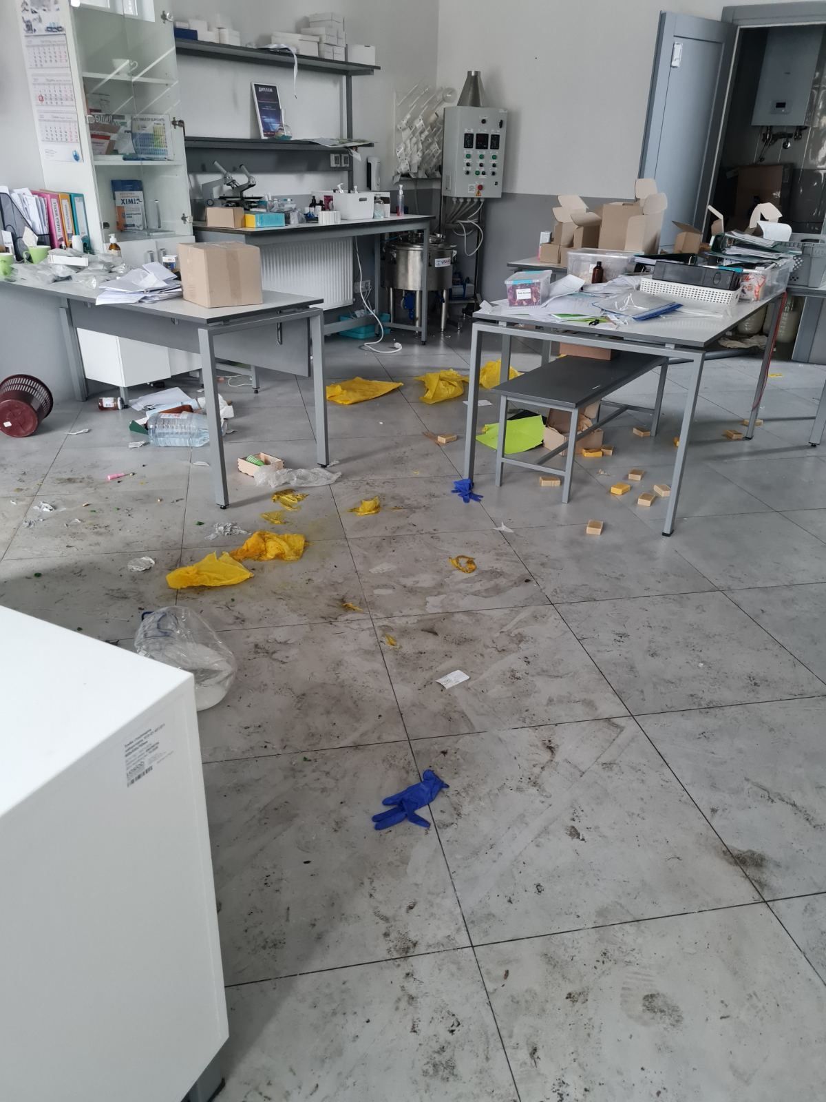 Вони також увірвалися на виробництво, пограбували й зруйнували лабораторію. Те, що не змогли винести, до прикладу, меблі чи важке обладнання, вони просто понищили,