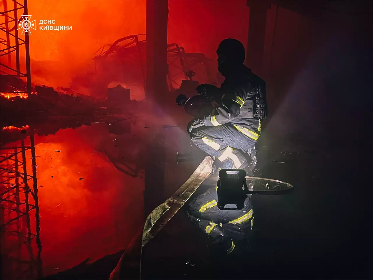 На Київщині пожежа внаслідок атаки дронами / Фото ДСНС