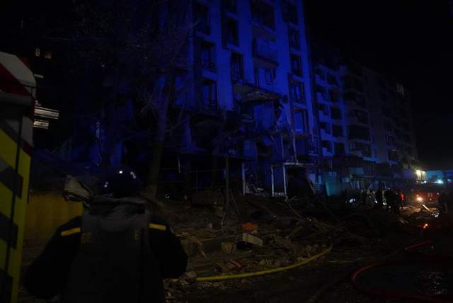 Внаслідок ворожого обстрілу сталося загоряння у 25-поверховому житловому будинку з частковим руйнуванням 1 та 2 поверхів. О 21:25 пожежу ліквідовано на загальній площі 100 квадратних метрів,