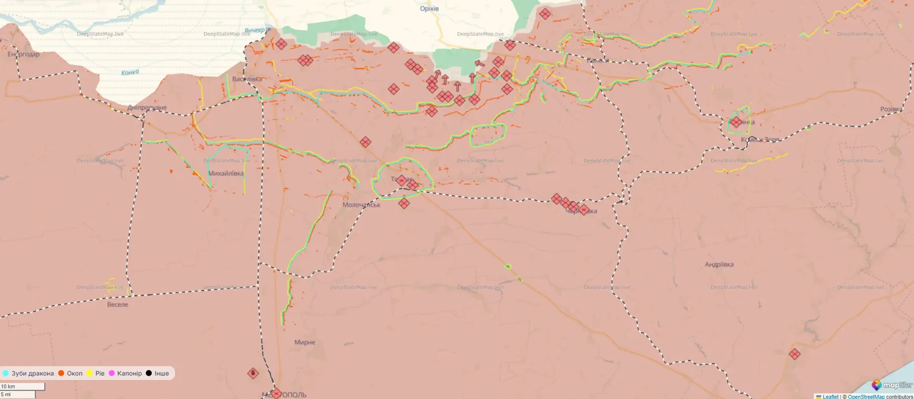 Лінії оборони росіян на Запорізькому напрямку / Скриншот Deepstatemap