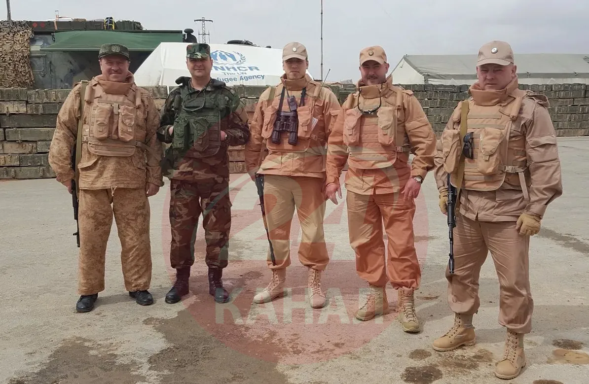 Щасливі росіяни на військовій базі з наметом Управління Верховного комісара ООН у справах біженців у Сирії / Фото з телефону Володимира Малькути