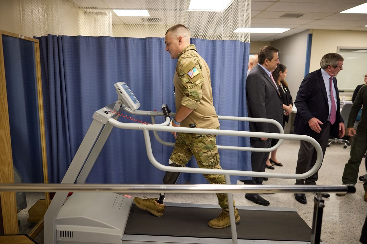 Під час візиту Зеленський оглянув кімнату реабілітації героїв. Там встановили спеціальне обладнання. Воно допомагає відновити фізичні можливості захисників, які отримали поранення.