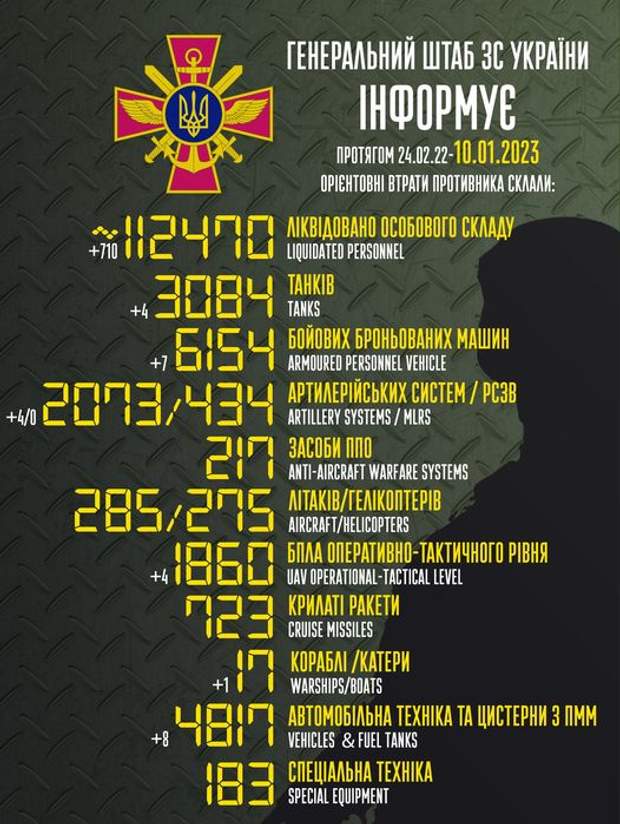 Актуальні втрати ворога станом на 10 січня / Інфографіка Генштабу ЗСУ
