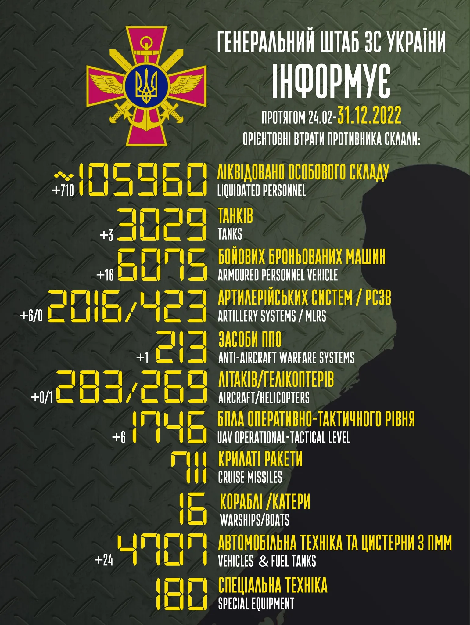 Інші втрати ворога станом на 31 грудня