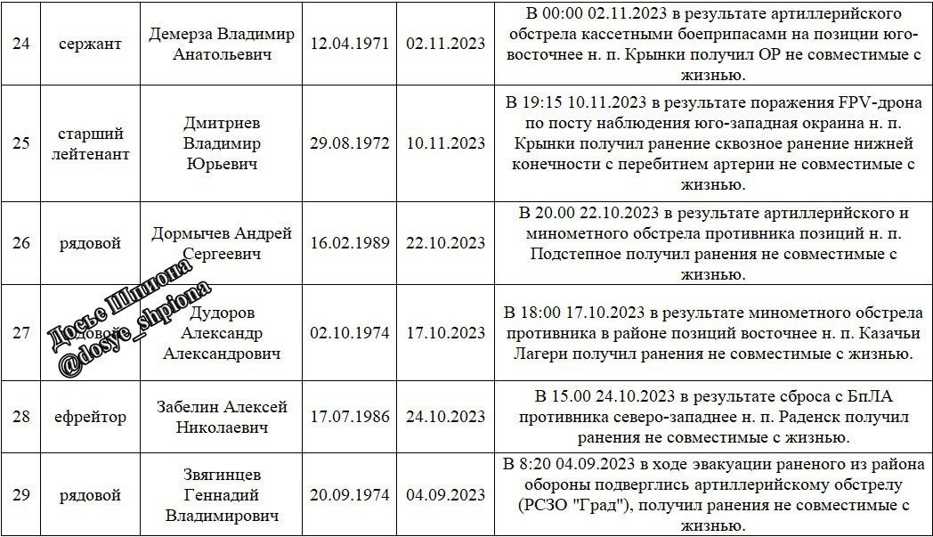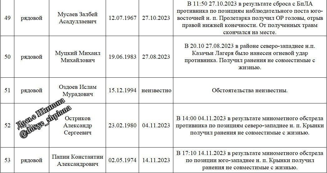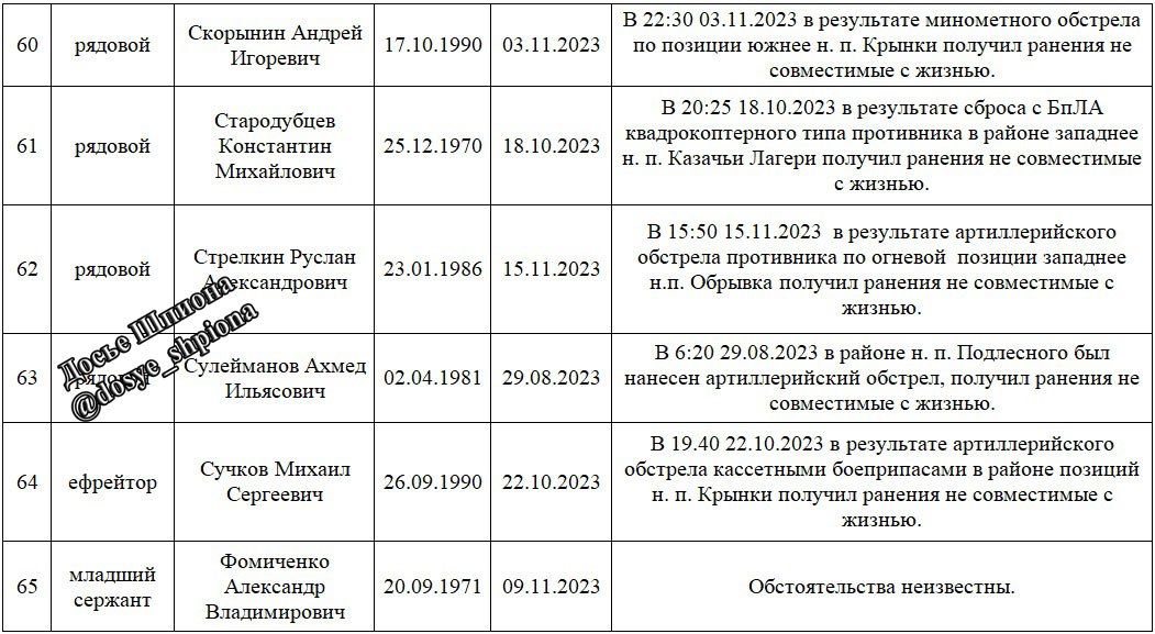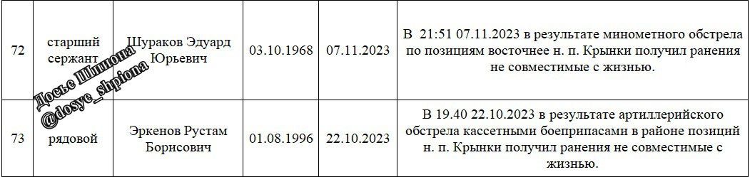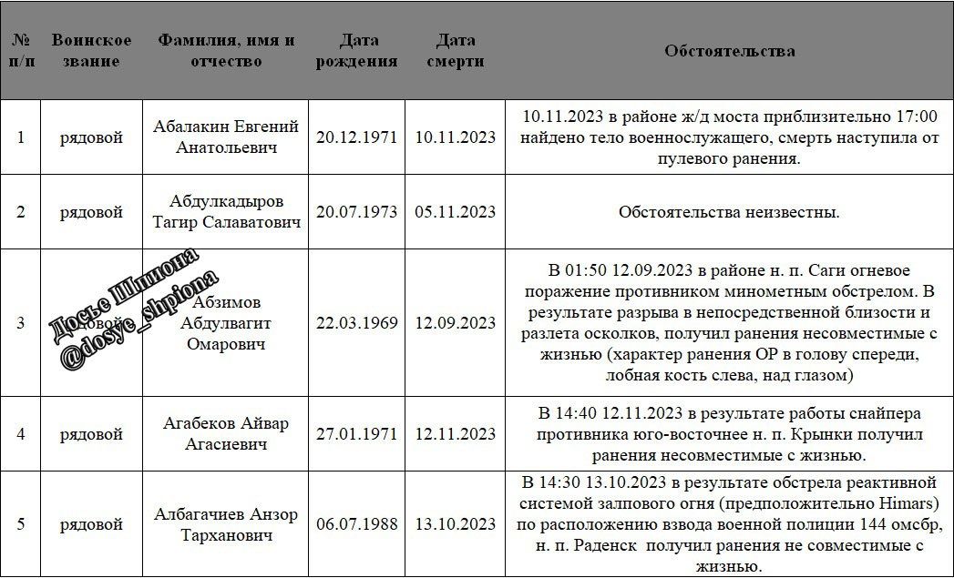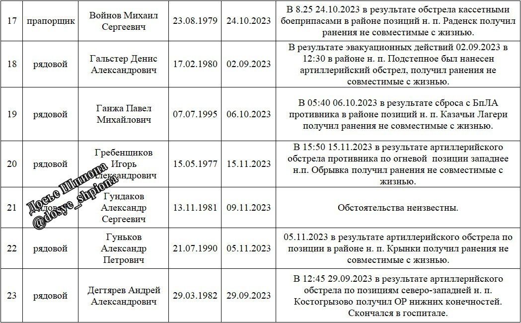 Крім того, список також містить й інформацію про обставини смерті військових російської бригади. У дописі каналу зазначено, що основними причинами загибелі окупантів стали ракетні, артилерійські та мінометні обстріли.