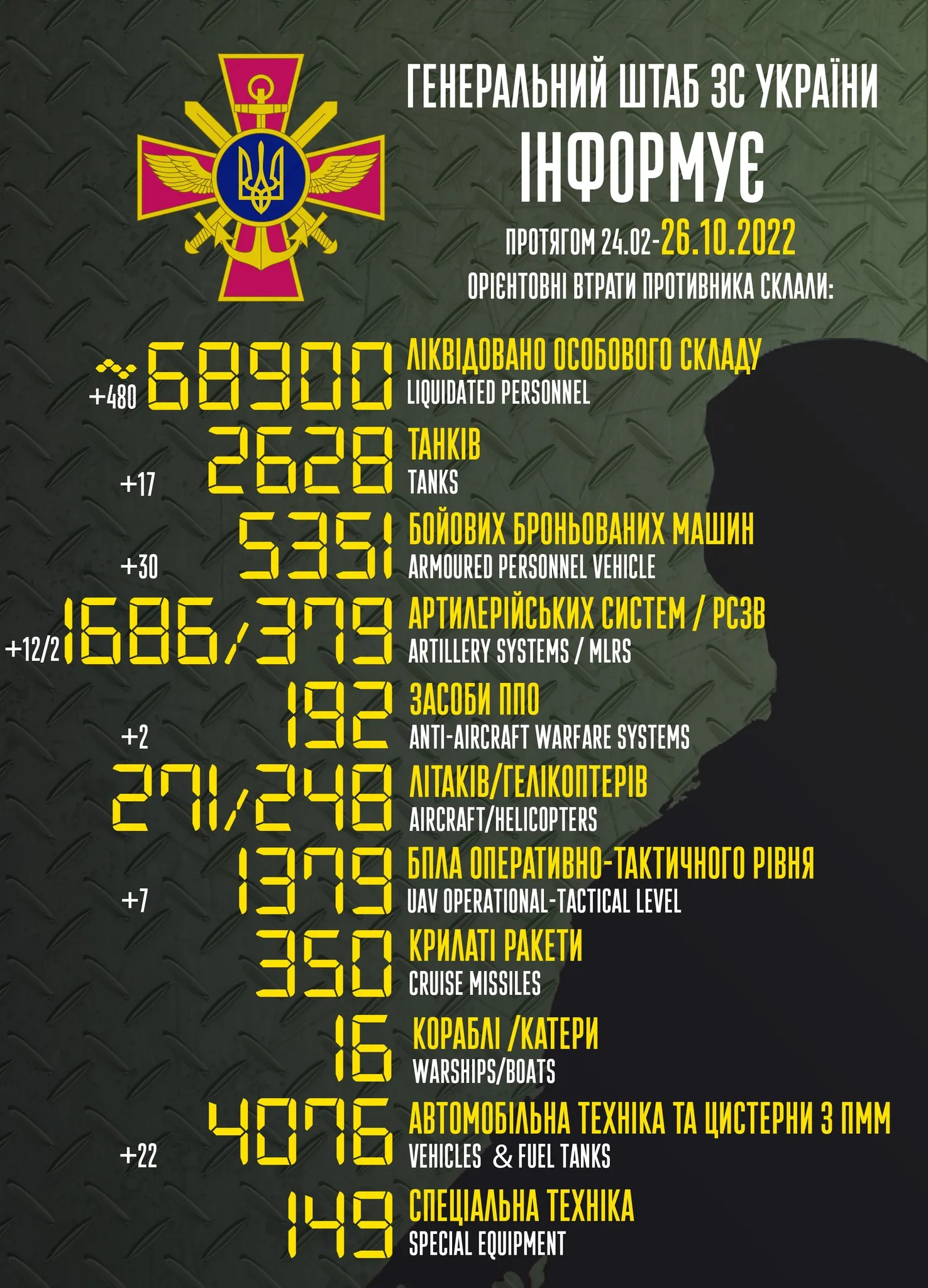 Втрати ворога станом на 26 жовтня / Генштаб ЗСУ
