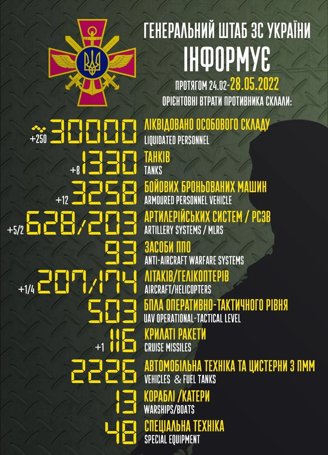 Актуальні втрати ворога станом на 28 травня / Інфографіка Генштабу