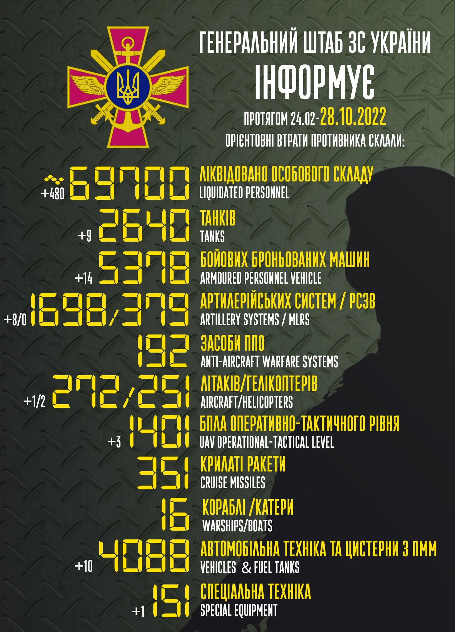 Актуальні втрати ворога станом на 28 жовтня / Інфографіка Генштабу ЗСУ