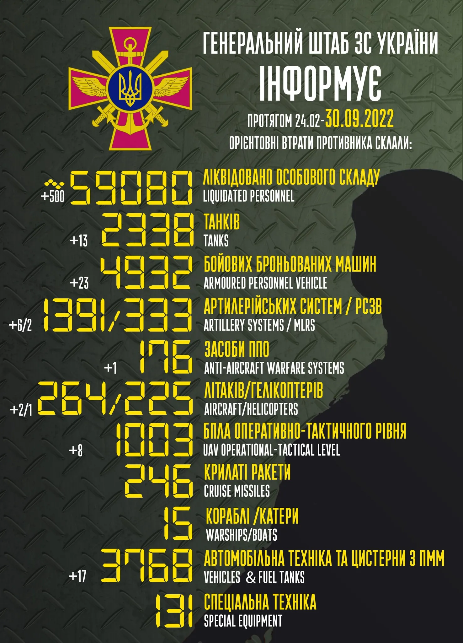 Втрати ворога станом на 30 вересня / Фото Генштаб ЗСУ