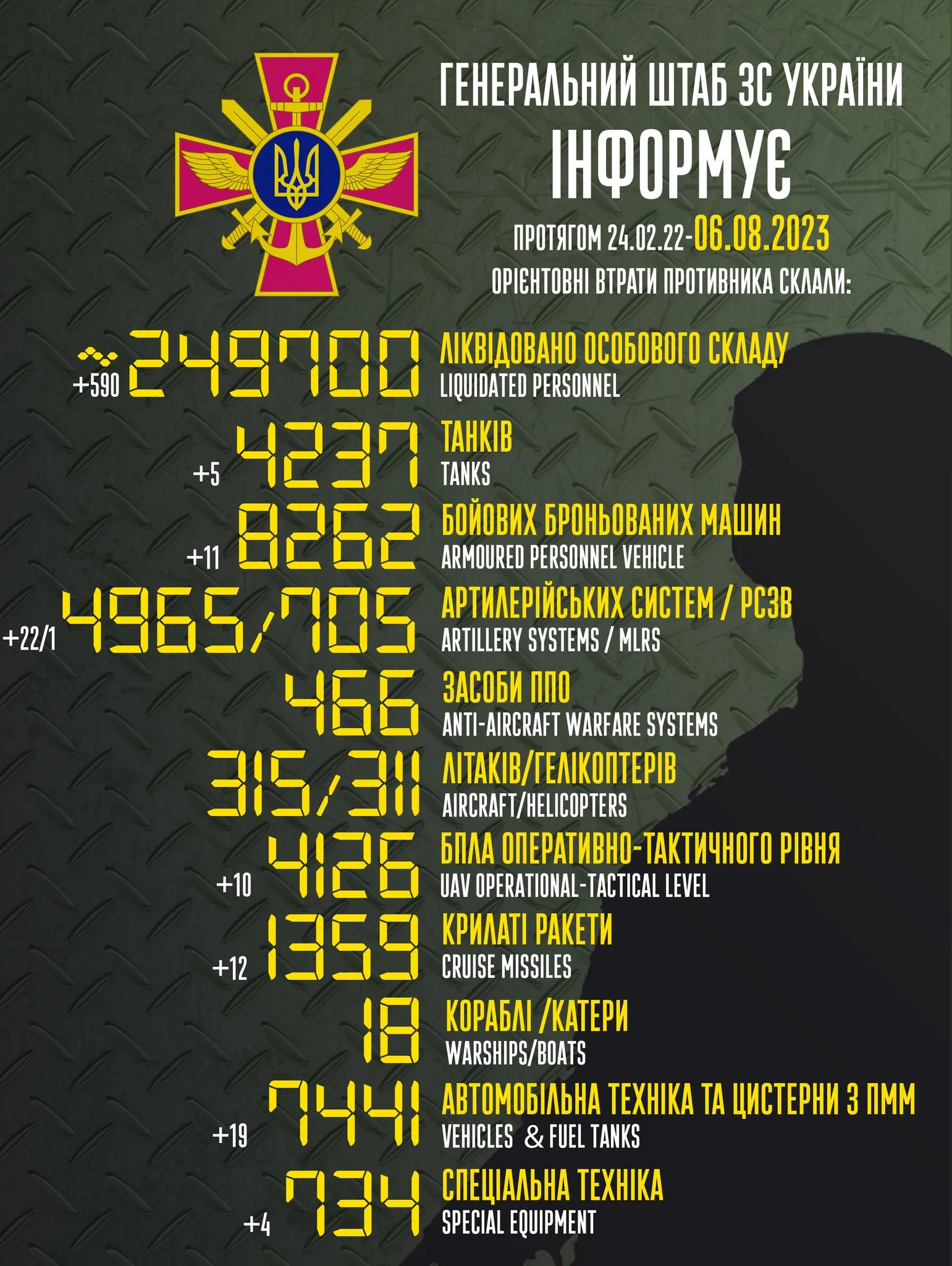 Актуальні втрати ворога станом на 6 серпня / Інфографіка Генштабу ЗСУ