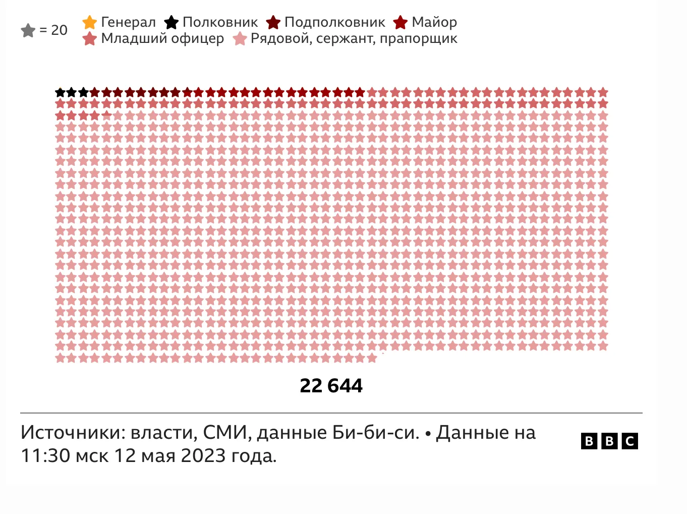 Найбільше загинуло рядових солдатів / Інфографіка BBC
