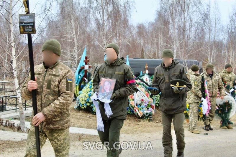 Провести захисницю в останню путь прийшли рідні, близькі та небайдужі містяни. Зокрема, приїхали її побратими та посестри, яких звільнили з російського полону.