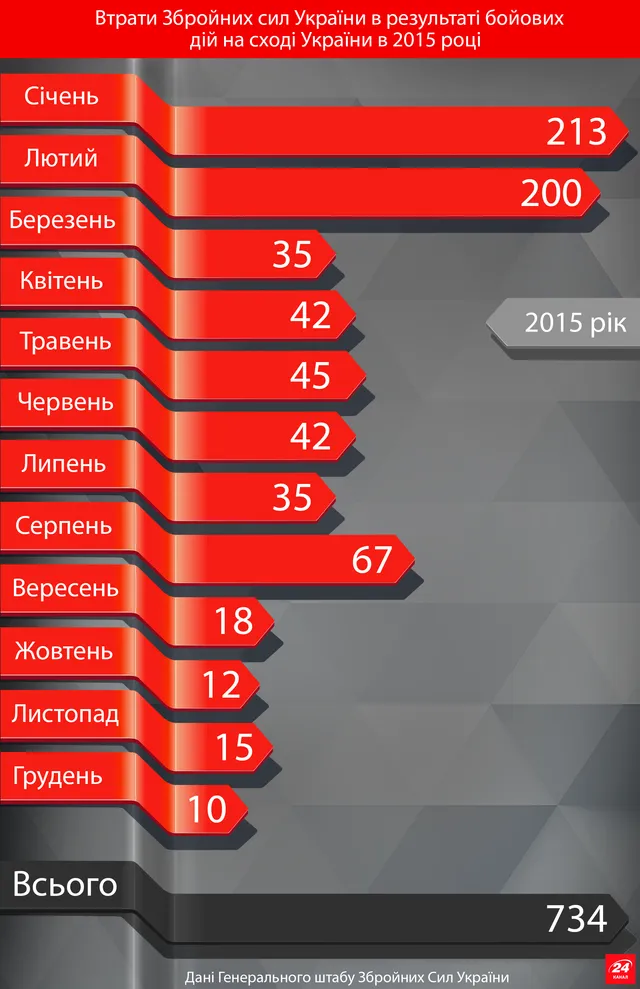 Ще одним важким періодом для ЗСУ був січень-лютий 2015 року – у цей період значна кількість українських військових загинула в районі Донецького аеропорту та під час атаки російсько-терористичних військ на Дебальцеве.