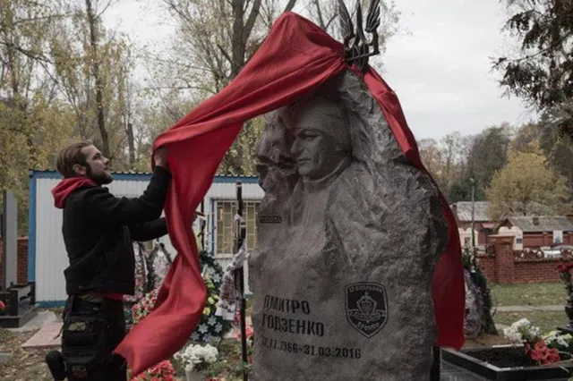 Родина Дмитра Годзенка бореться за перейменування вулиці імені ворожої столиці. А поки триває тяганина, увічнюють воїна іншими способами. Нещодавно на цвинтарі встановили трьохтонний пам’ятник. Славетний "Годзила" дивиться зі скелі, на обличчі – добра усмішка. Майстер монументу відмовився від портретів, але щоби увічнити Героя, зробив виняток.