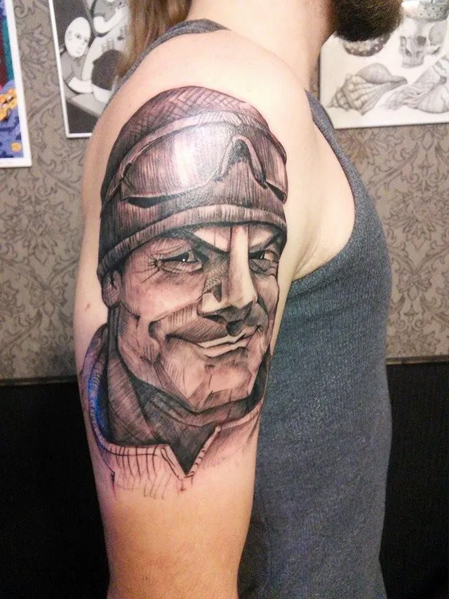 Ще задовго Олексій зробив татуювання із портретом батька. Ескіз авторства відомого музиканта й художника Юрія Журавля.