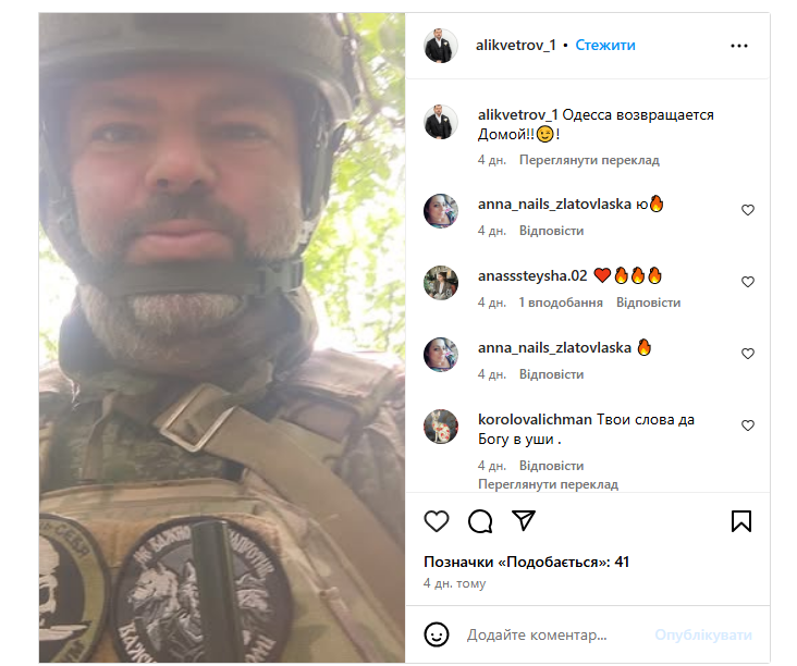 Фото Вєтрова у соцмережах / Скриншот ІМІ
