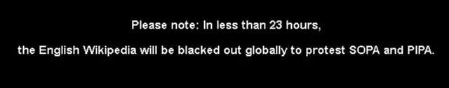 Wikipedia долучилася до акції протесту проти законопроектів SOPA (Stop Online Piracy Act) та PROTECTIP Act (PIPA), які перебувають на стадії розгляду Конгресом США.