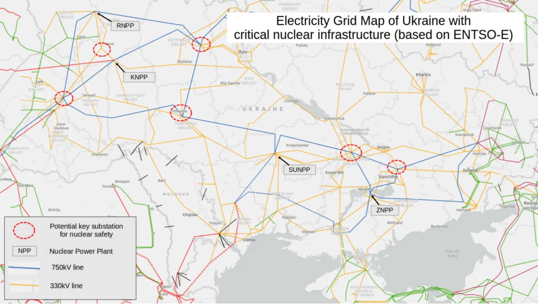 Під час останнього масованого обстрілу було пошкоджено лінії живлення до трьох діючих АЕС – Рівненської, Хмельницької та Південноукраїнської, що забезпечують дві третини електроенергії України. Пошкодження підстанцій створюють нестабільність енергопостачання, що може призвести до втрати охолодження реакторів і радіоактивних викидів.