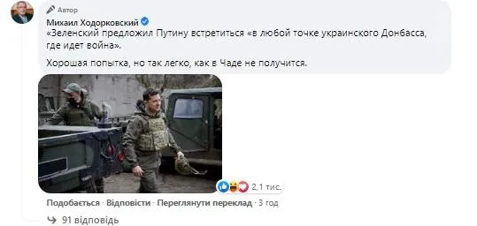 У коментарях до посту ексолігарх також оцінив ініціативу Зеленського щодо зустрічі з Путіним на Донбасі.