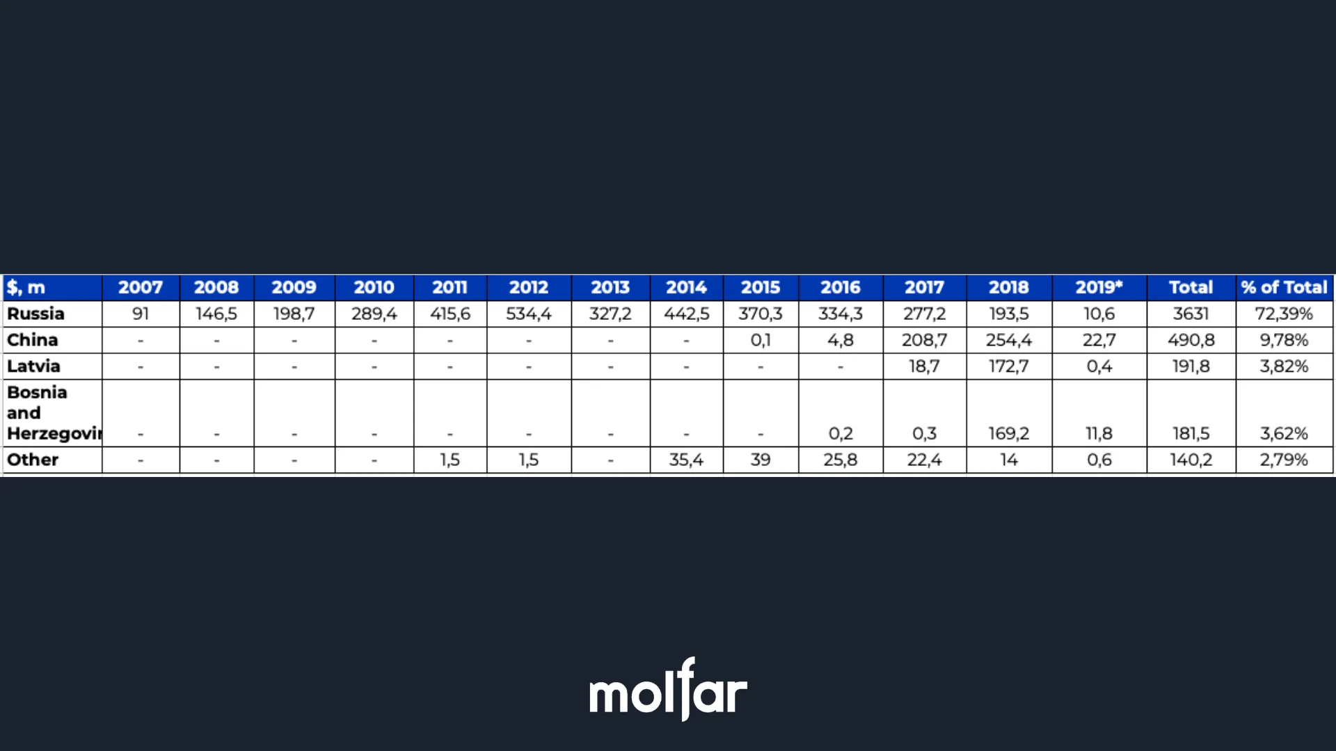 Після 2014 року АТ "Мотор Січ" розгорнуло експорт через компанії-прокладки / Інфографіка – Molfar