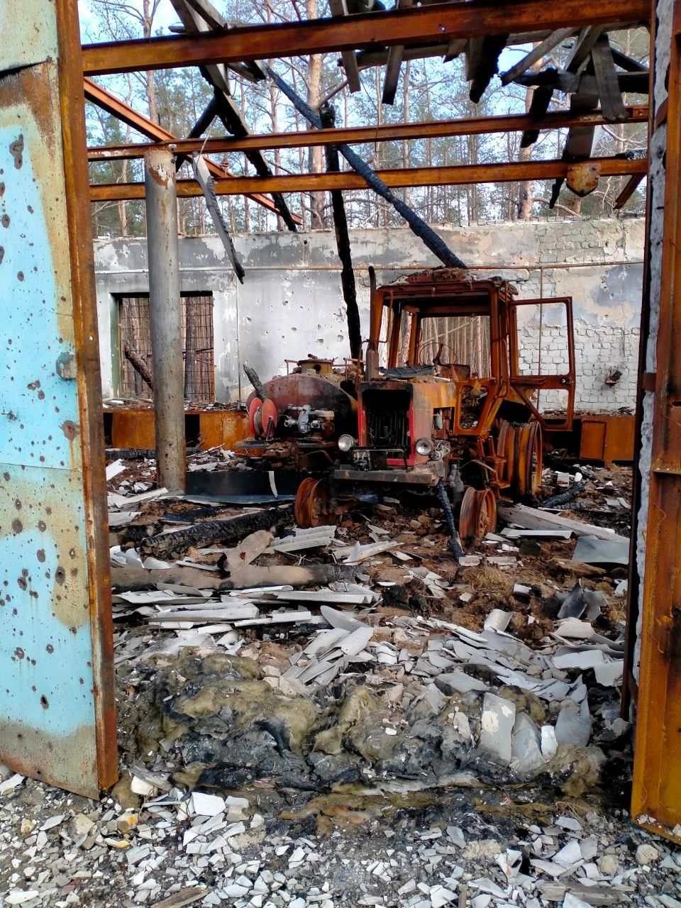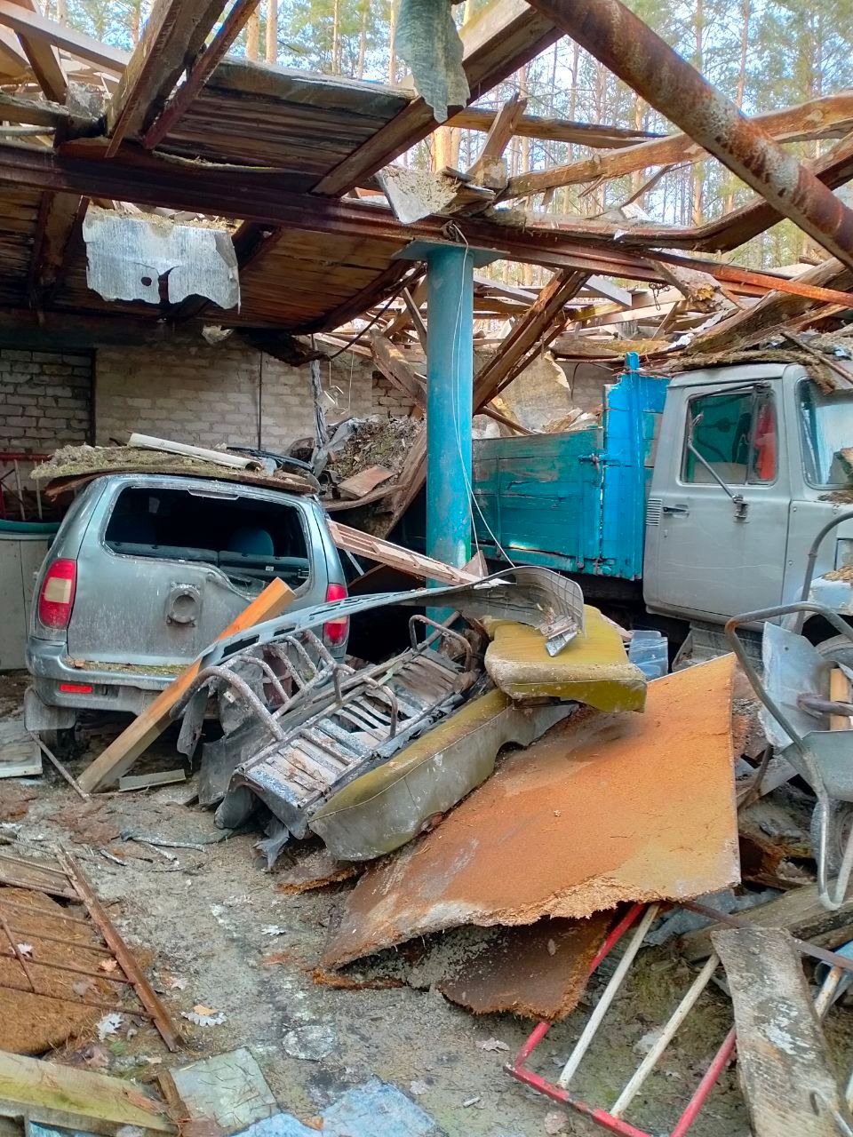 80% будівель парку зруйновані. Відносно вціліла тільки головна контора, де жили окупанти. Вона теж розграбована й розбита. Села громади – Долина, Богородичне, Ярова, Тетянівка – мають 90 – 100% пошкоджених будівель. Практично жодного цілого будинку не лишилося: вибиті вікна, знесені дахи, вигорілі хати, декому до фундаменту все рознесло.