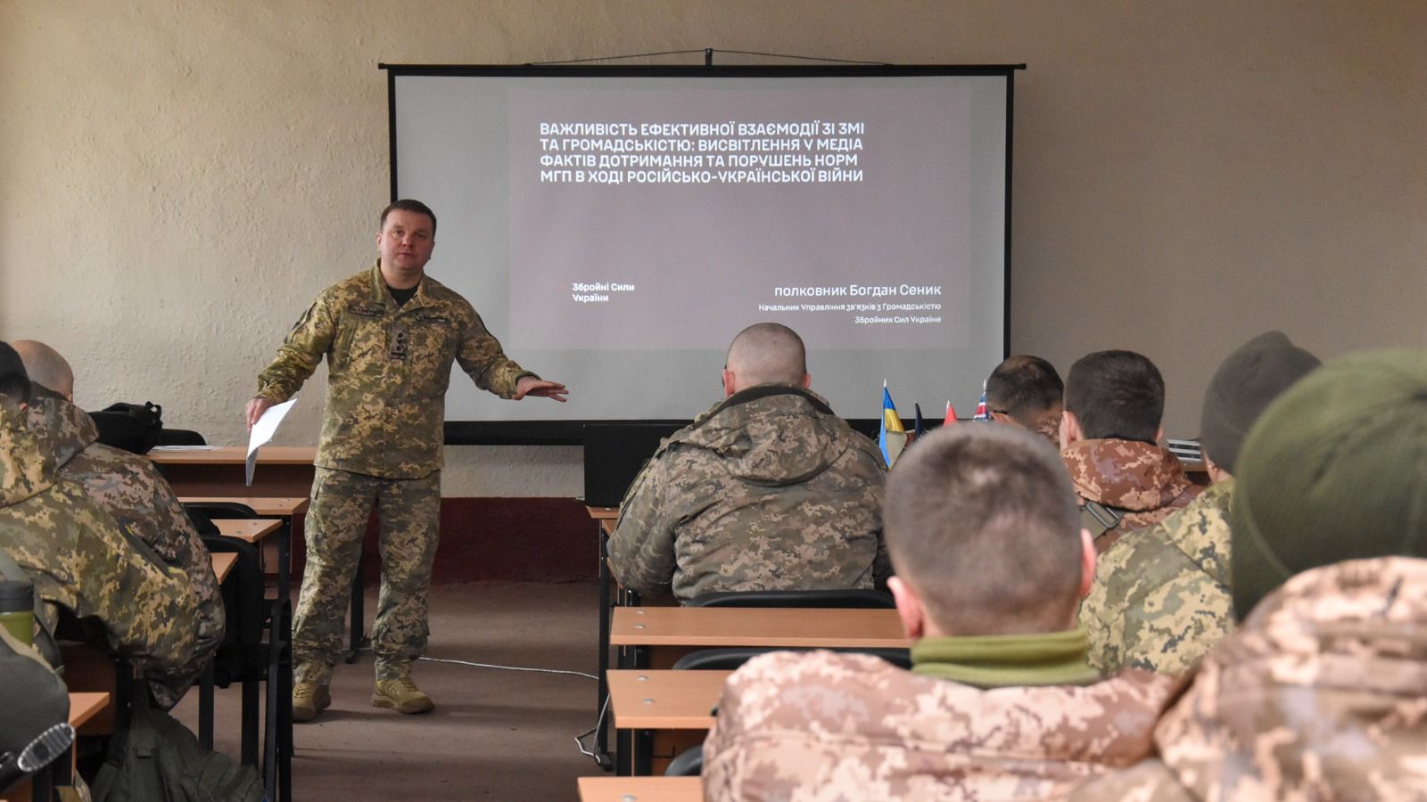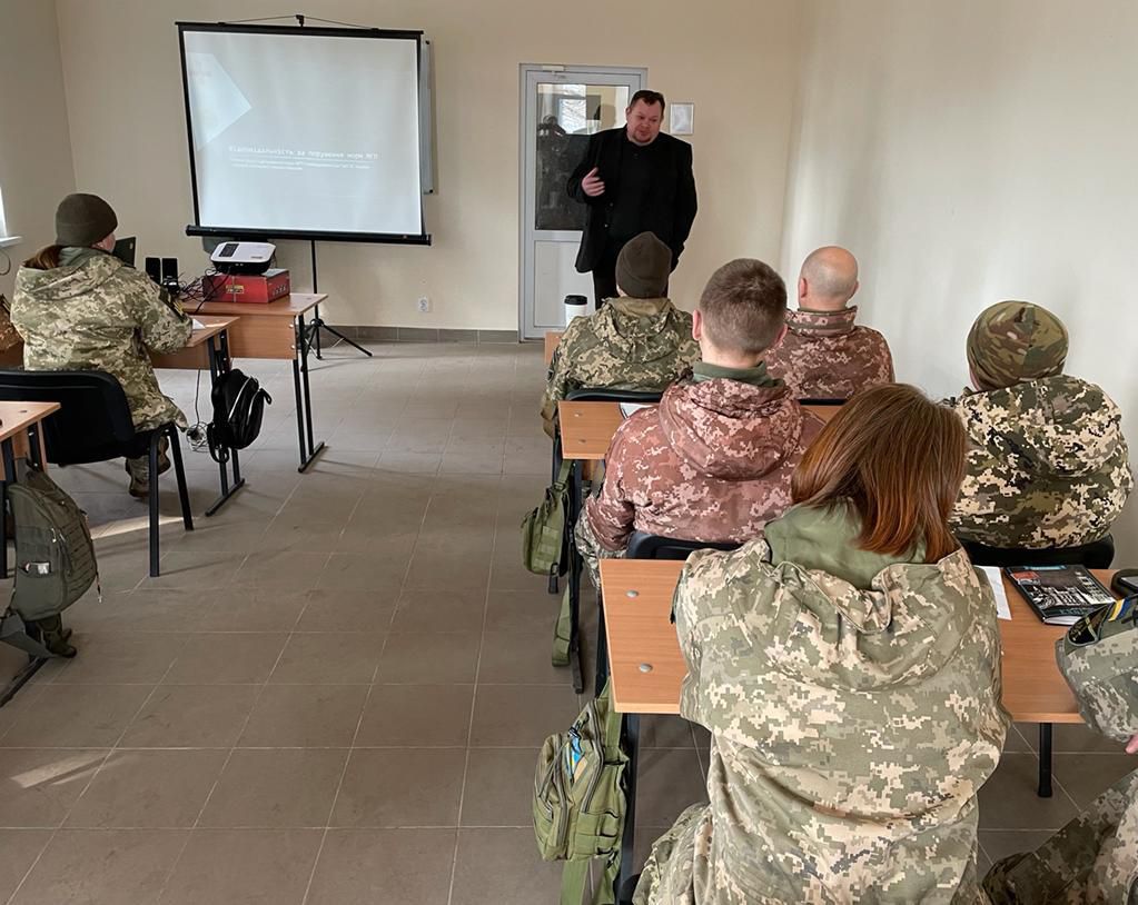 Також на лекції для військовослужбовців запросили представників Міноборони та Генштабу ЗСУ. На конкретних прикладах тренінги проводили докторка філософії з міжнародного права майор Інна Заворотько (представниця Департаменту юридичного забезпечення Міністерства оборони України) та начальник Управління зв’язків з громадськістю ЗС України полковник Богдан Сеник.