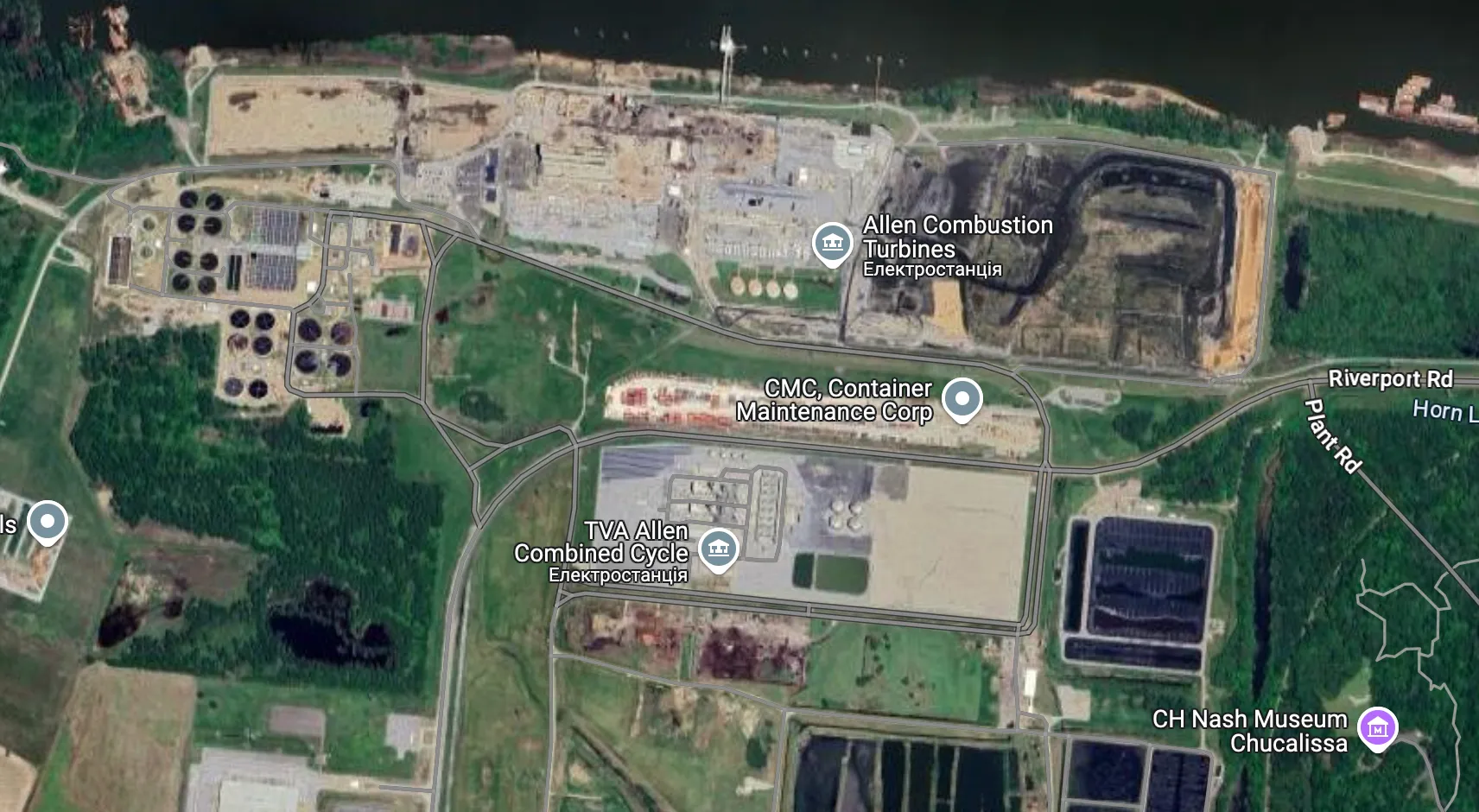 Бокстон – забруднений район у Мемфісі. На знімку видно промислову зону, де розташовано дата-центр, та очисні споруди / Google Maps