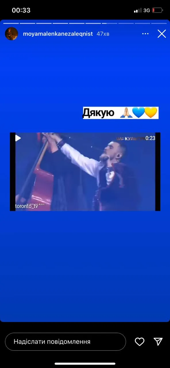 Окрім того, захисниця Маріуполя Валерія з позивним "Нава", яка нещодавно втратила чоловіка – теж бійця полку, опублікувала сторіз в інстаграмі. Військова досі перебуває на "Азовсталі" та подякувала музикантам.
