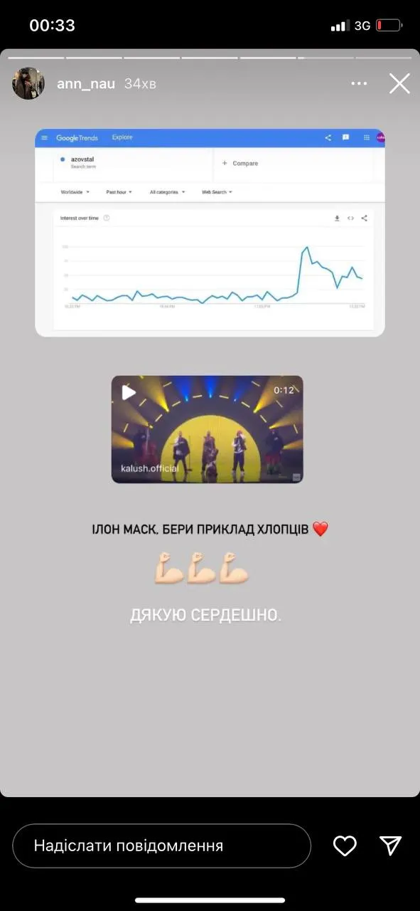 Окрім того, полк захисників Маріуполя написав: "Дякуємо гурту Kalush Orchestra за підтримку! Слава Україні!".