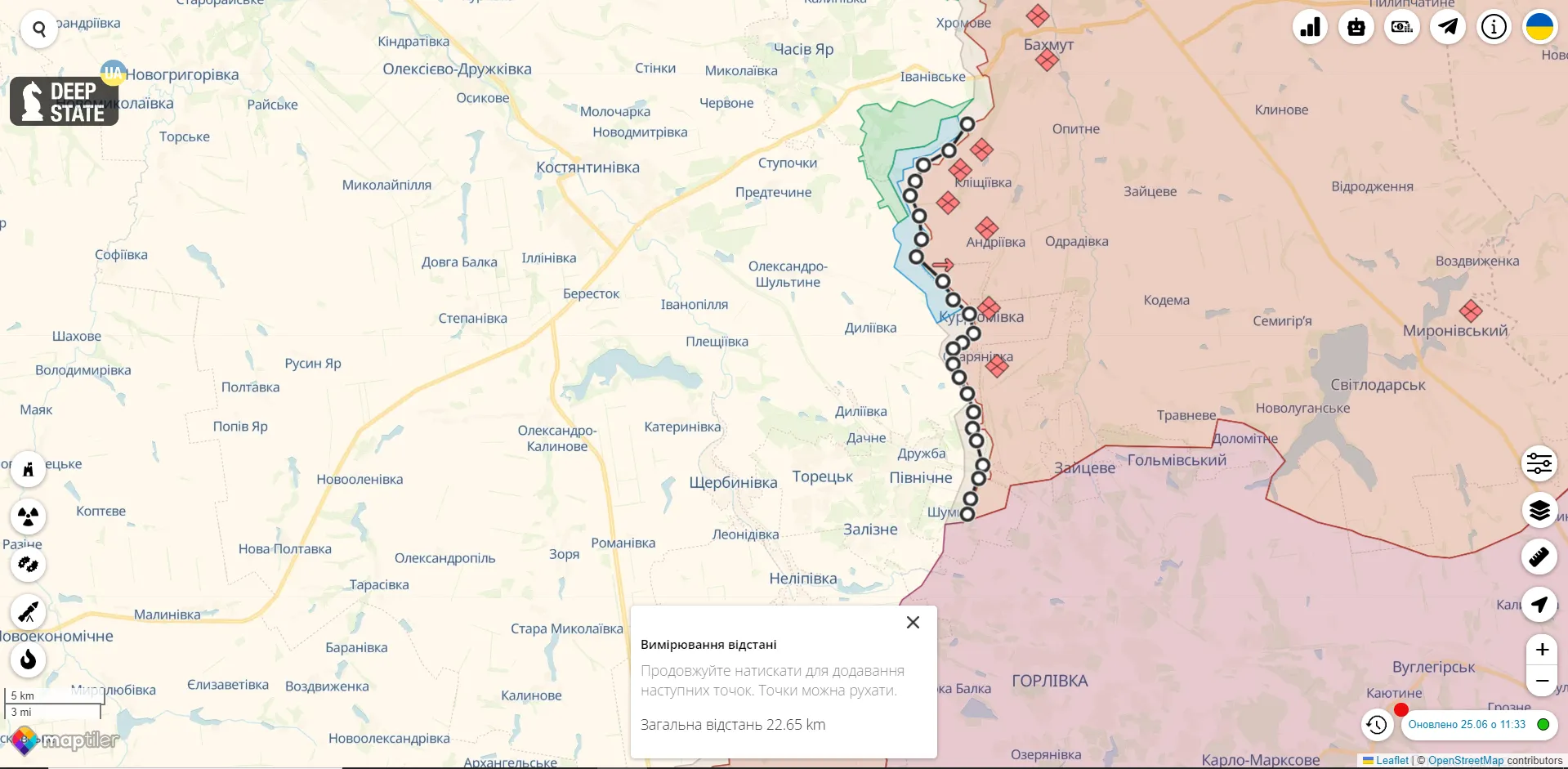 Висоти Бахмутського напрямку / Скриншот Deep State Map