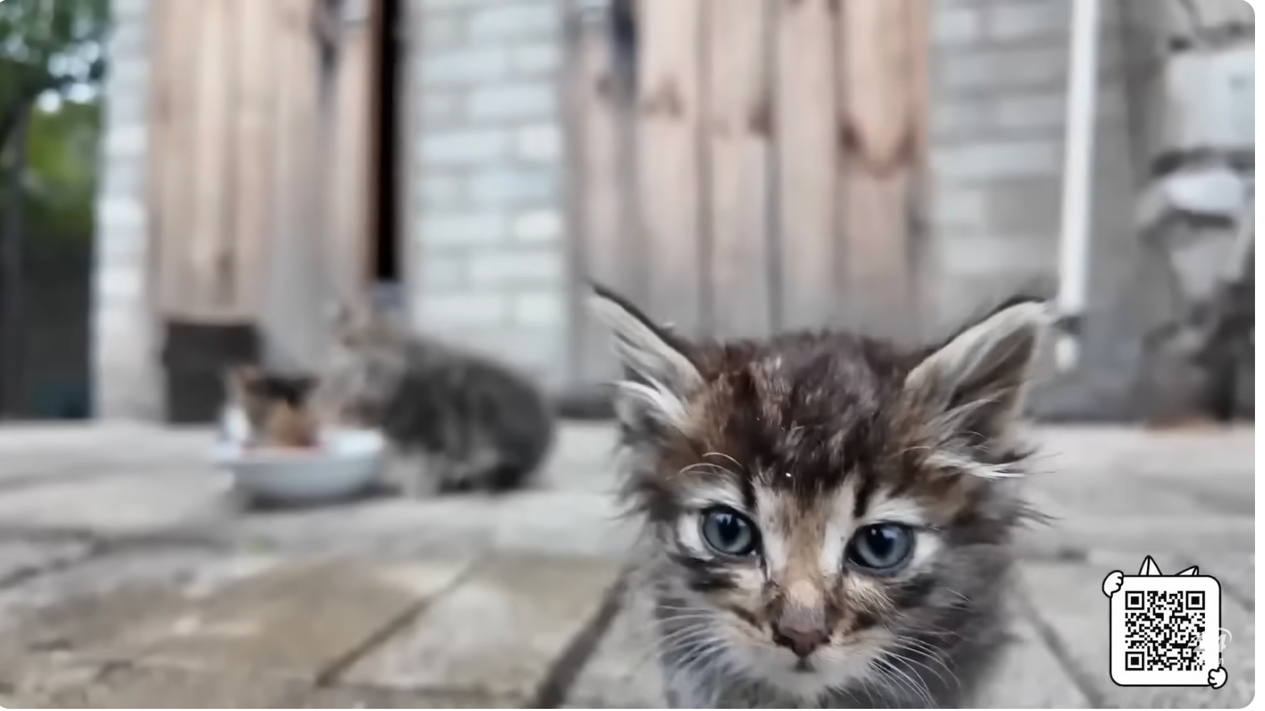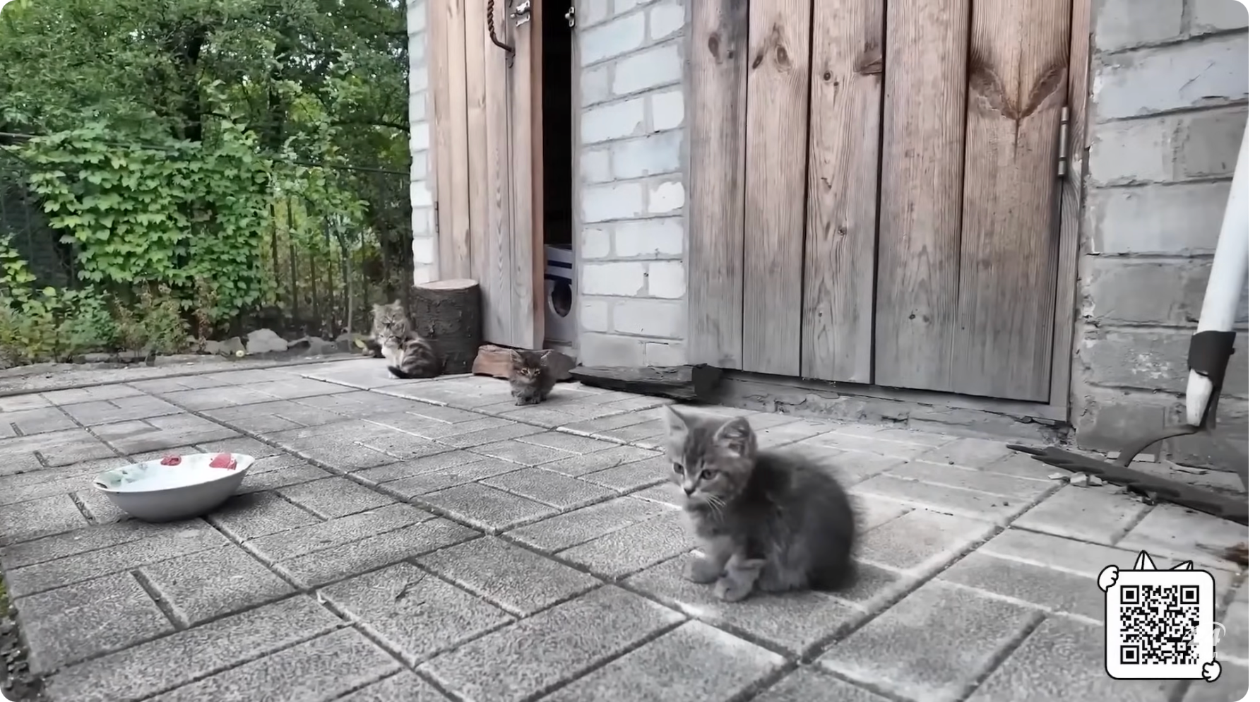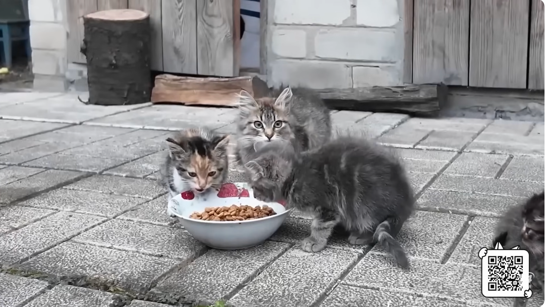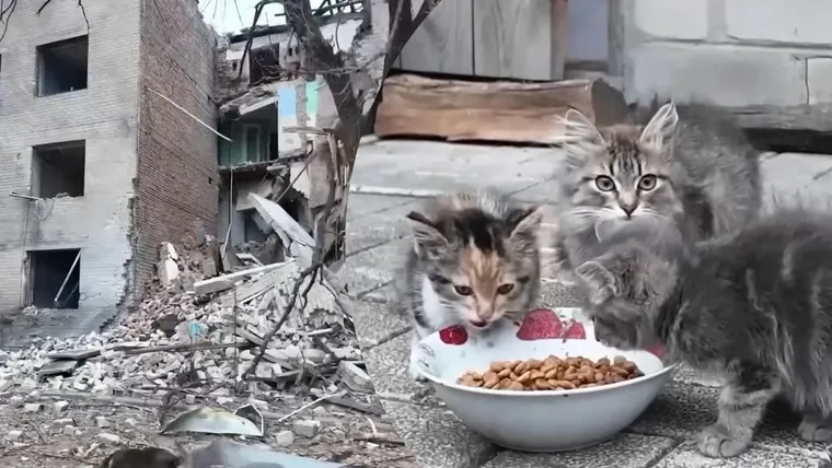 Кошенята живуть у будці з пінопласту. Олена годує їх та доглядає. Часто тварини перелякані через обстріли. Як тільки вони їх чують, то одразу втікають і ховаються. На жаль, звуки вибухів у Добропіллі майже постійні.