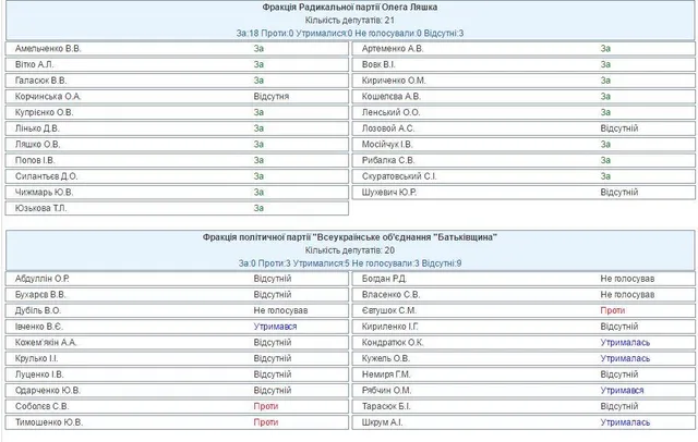 Варто зазначити, що в повному складі за кошторис не голосували фракції "Батьківщини" та "Опозиційного блоку", натомість "Радикальна партія" практично усім складом проголосувала за.