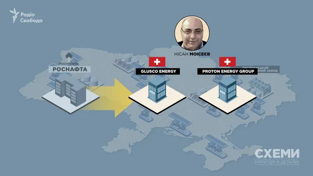 Нісан Моісеєв – власник швейцарських фірм Glusco Energy S.A. та Proton Energy Group S.A. В 2016 році російська держкомпанія "Роснефть" продала свої українські активи (мережу АЗС під брендами "ТНК", "Золотий гепард", Formula та Smile, а також нафтобази та Лисичанський нафтопереробний завод) фірмі Glusco Energy. А з 2017 року Proton Energy Group став найбільшим імпортером скрапленого газу в Україну.
