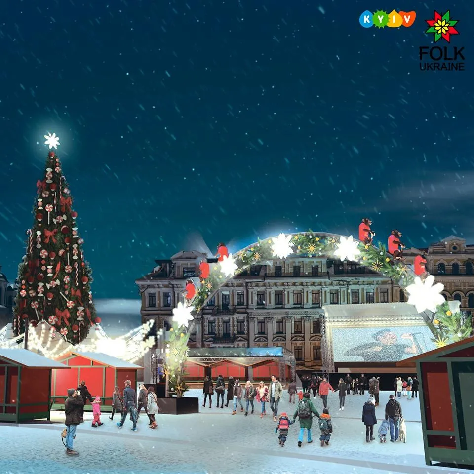 Навколо новорічного дерева розгорнеться восьмикінечна зірка з яскравих гірлянд. Триватимуть святкування у Києві від 14 грудня до 19 січня.