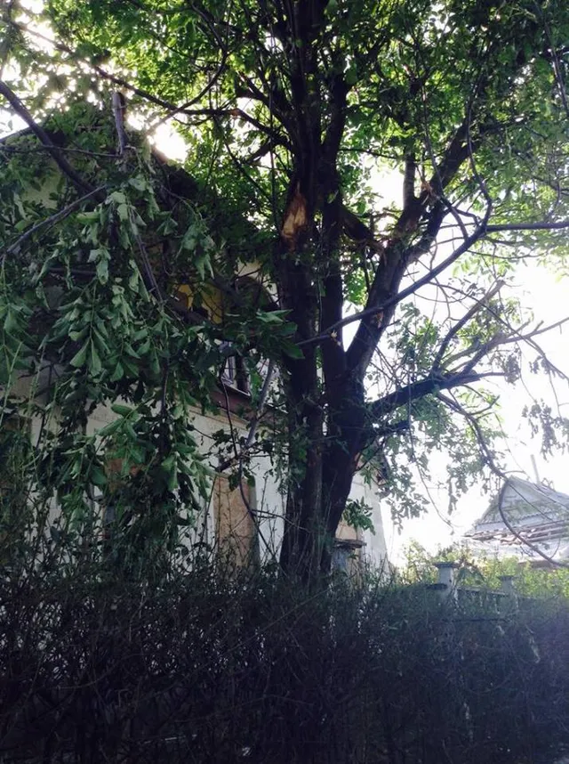 Каже, що це все, що залишилося. Родичі, говорить, в Донецьку. Тут нікого немає. В хату вже прилітає втретє. Двічі було весною. Пожежники через обстріли, відмовились їхати гасити пожежу. Добре, що сусіди позбігалися.