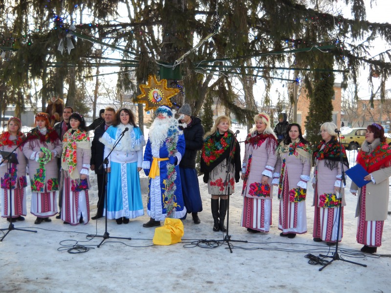 Росте ялинка на центральній площі міста Зіньків. До свят дерево почали прикрашати лише останні п'ять років.
