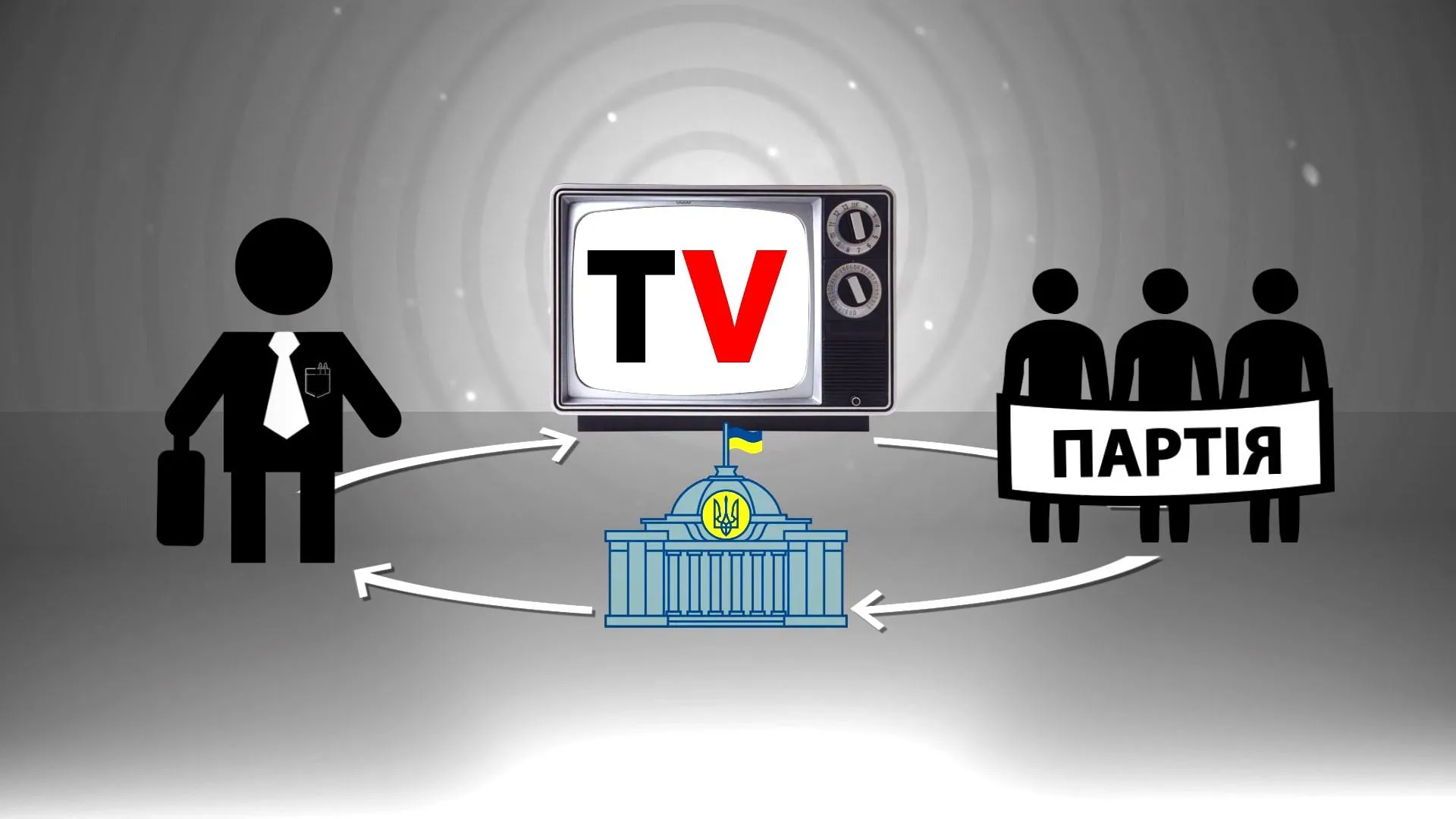 Працює це так: олігарх володіє телеканалом. Через телеекрани він просуває своїх політиків, завойовує довіру і голоси. Його люди проходять у парламент і обслуговують інтереси того самого олігарха. Коло замкнулось.