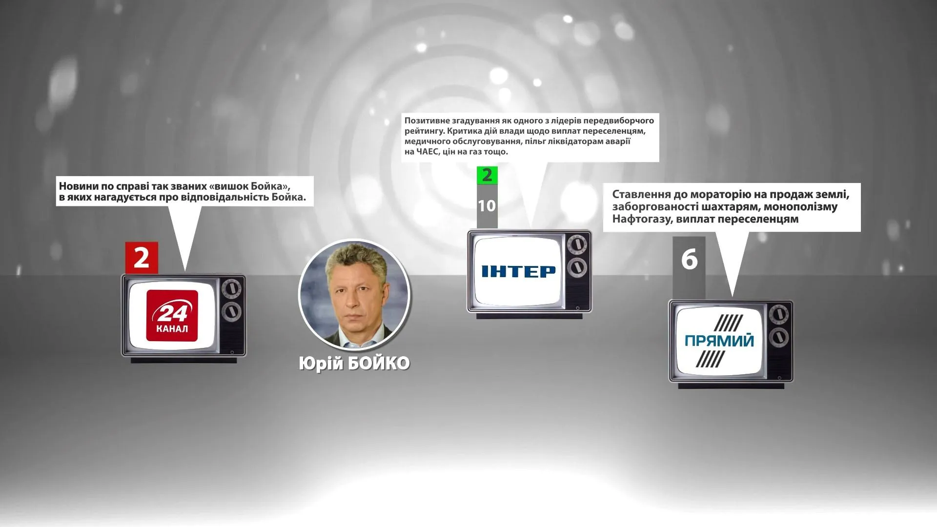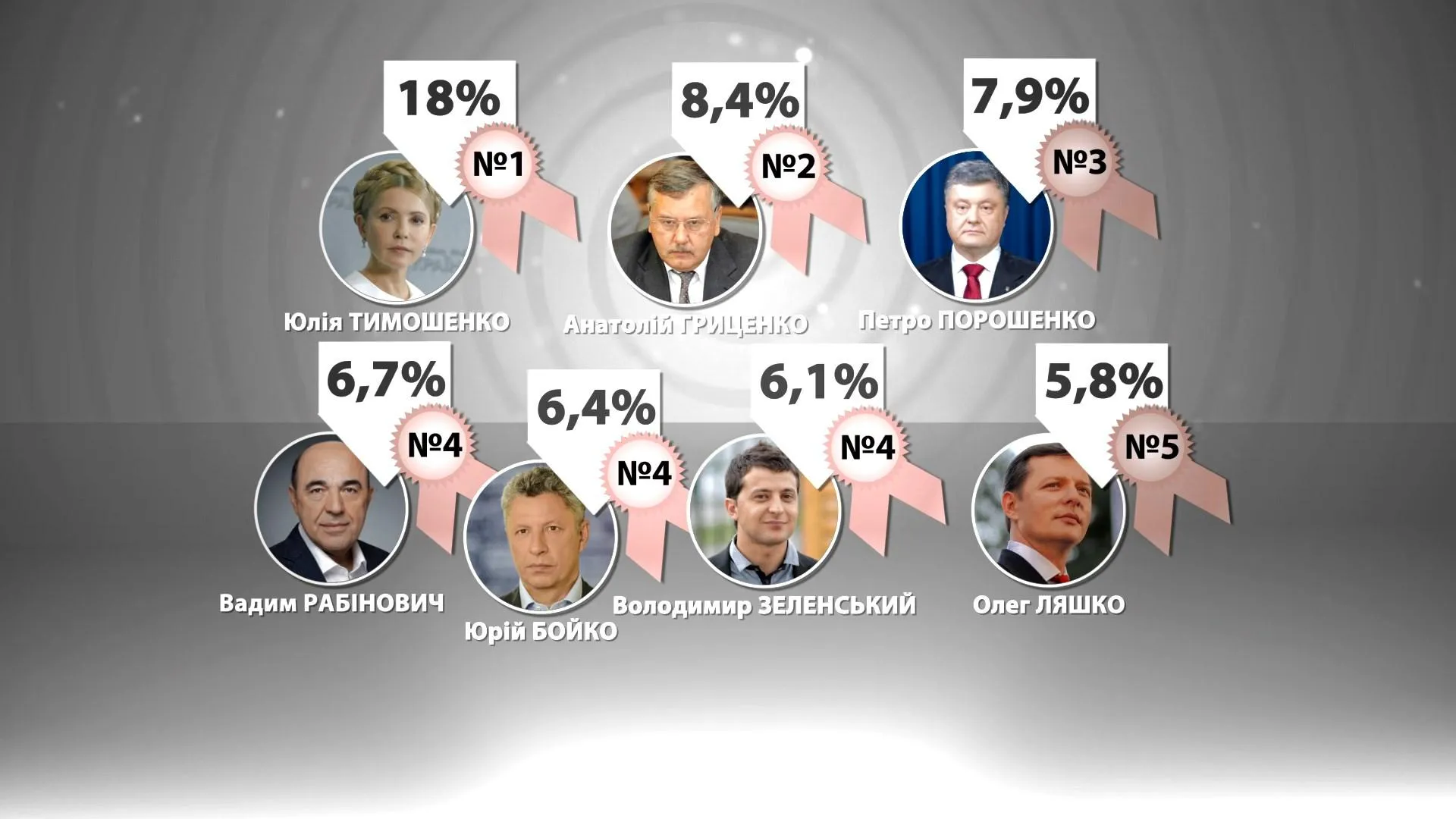 Рейтинг кандидатів у президенти продовжує очолювати Тимошенко. Наразі її підтримують 18% виборців, другий – Анатолій Гриценко, трійку замикає Порошенко. Ляшко лиш п'ятий після опоблоківця Рабиновича та актора Зеленського. Натомість лідерку "Батьківщини" телеканали увагою не балують. Лише той самий "Інтер" кілька разів позитивно згадував її програму. Експерти списують пасивність Тимошенко на літо.