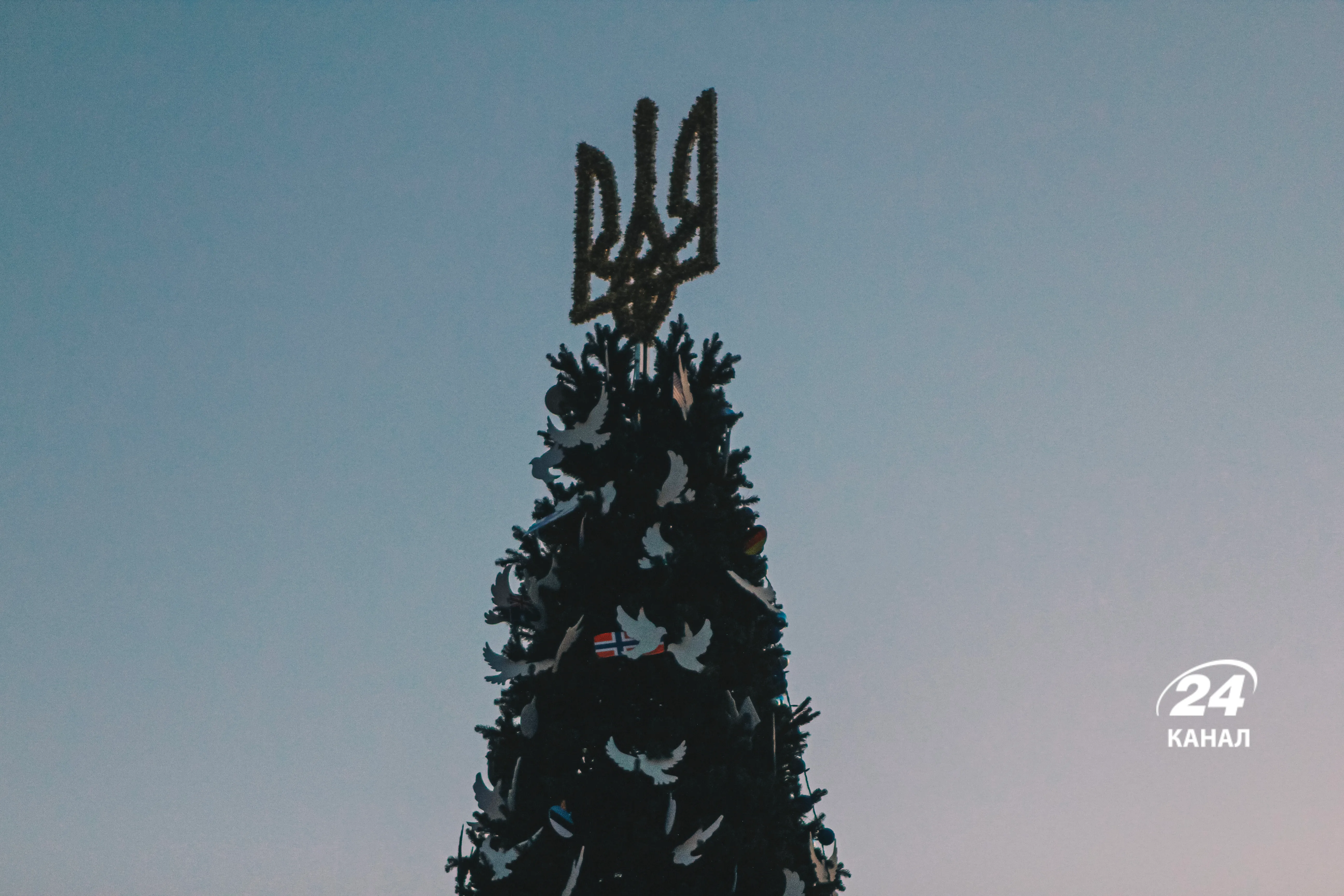 На верхівку ялинки встановили герб України / фото Валентина Поліщук